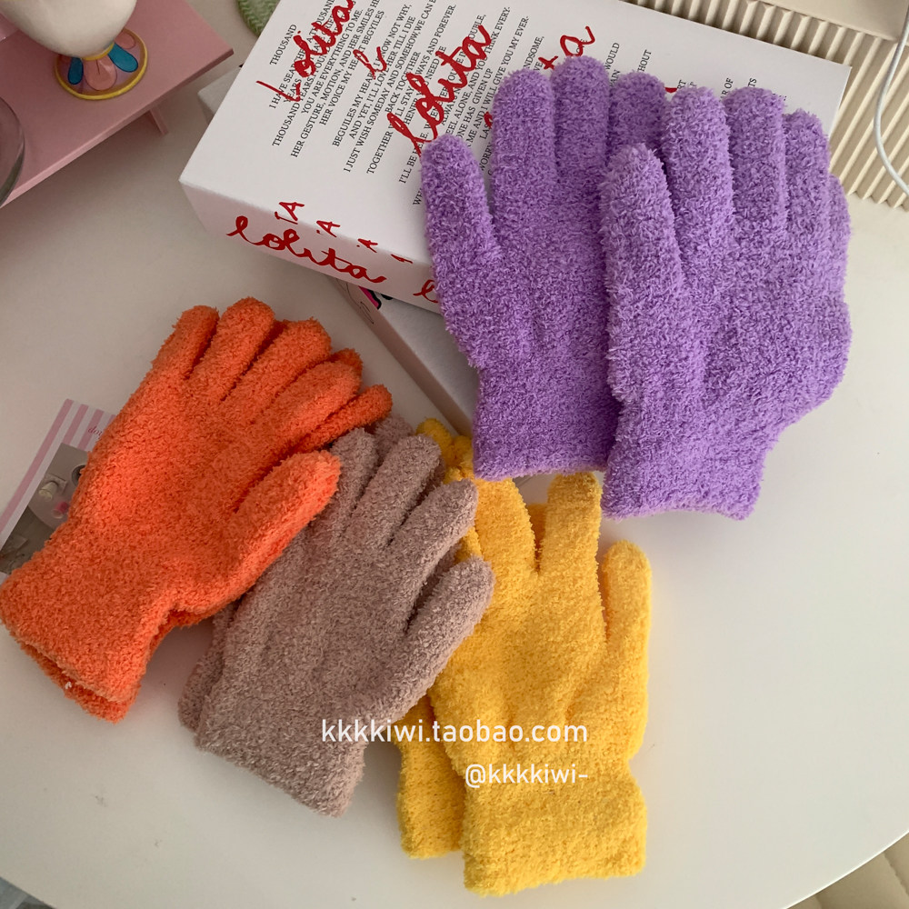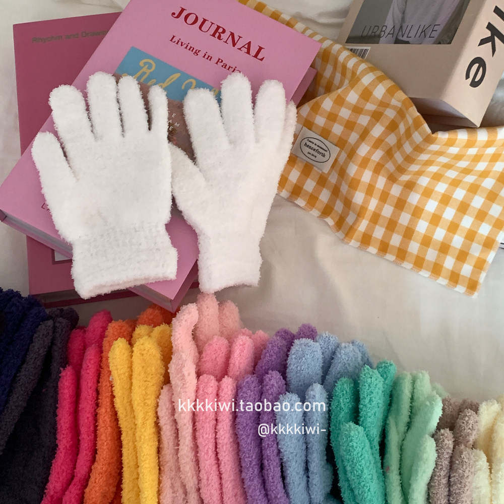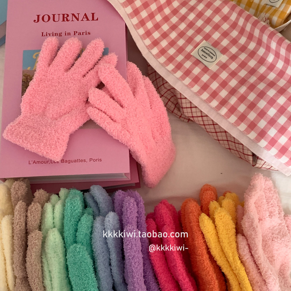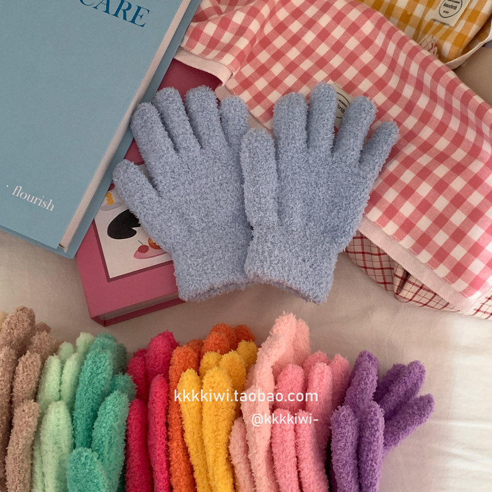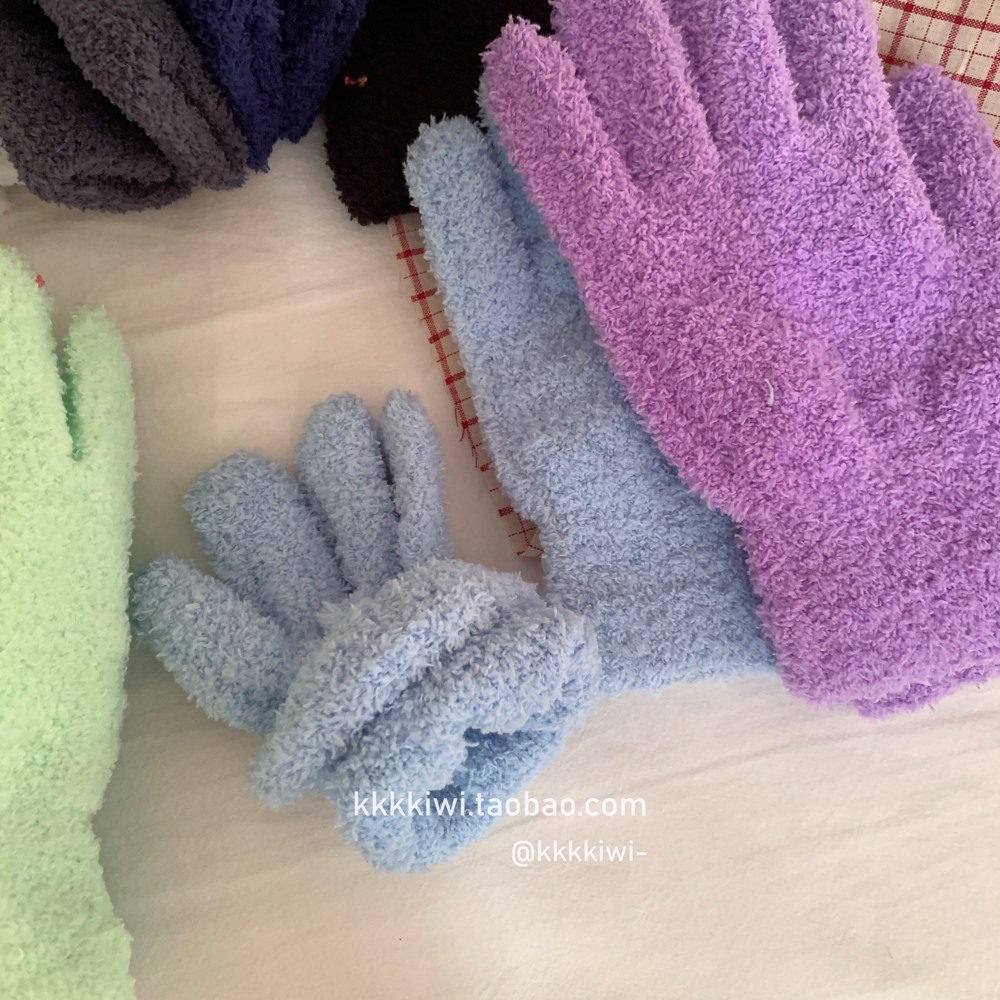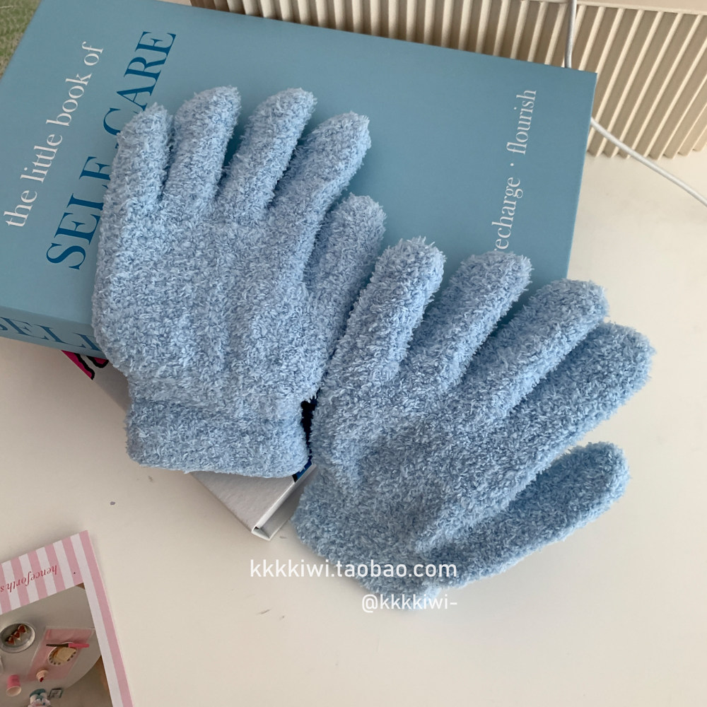 Baby Blue ~ корейский плюш, который не любит!Модные и милые острые -to -tip осени и зимние теплые коралловые бархатные перчатки