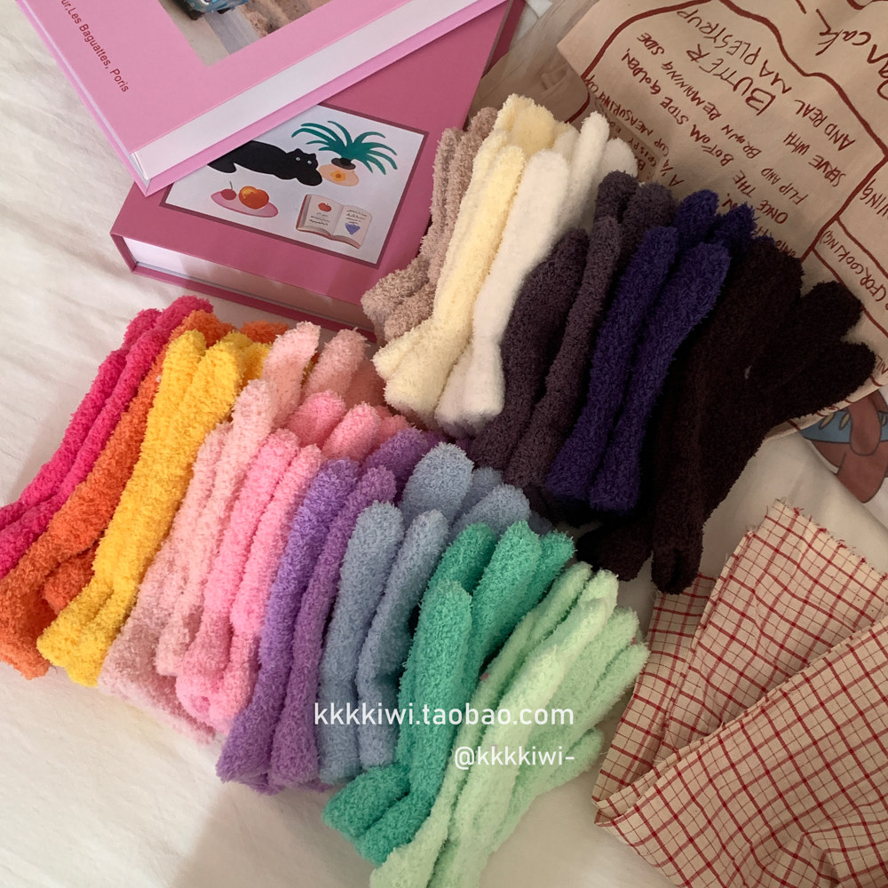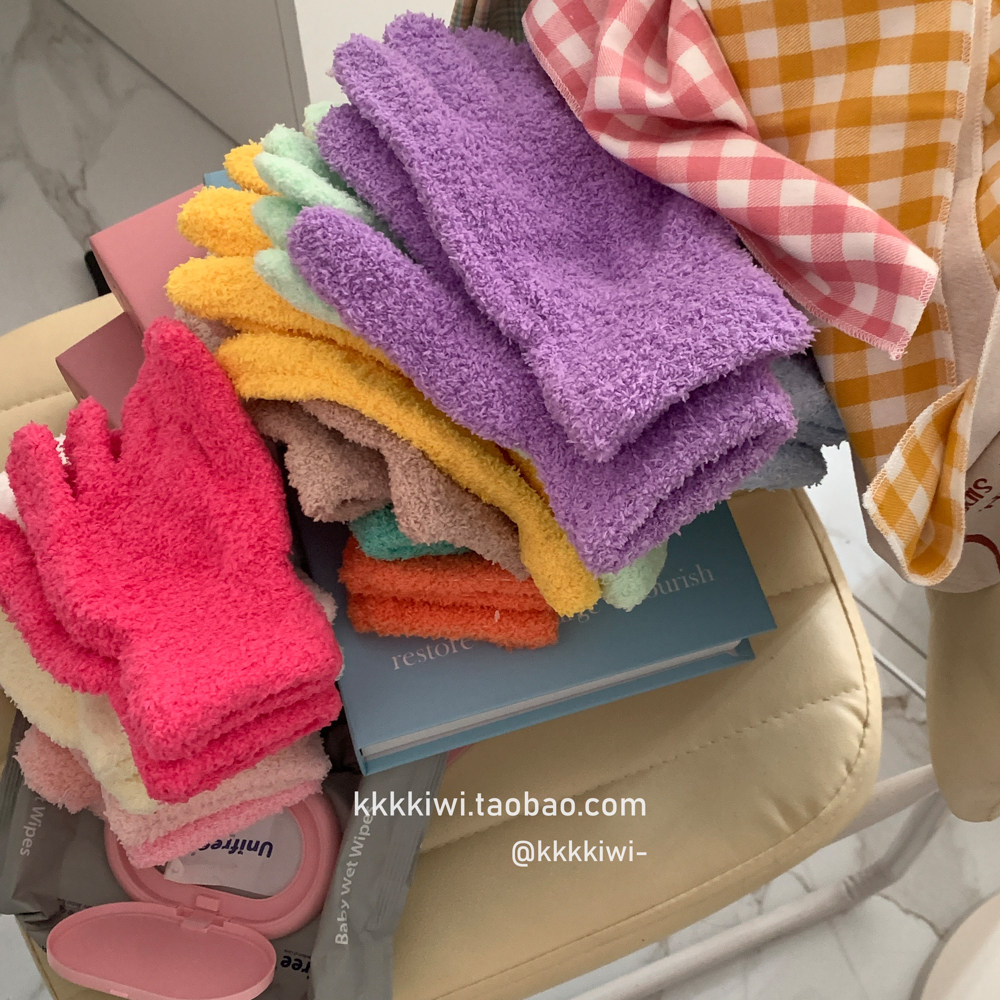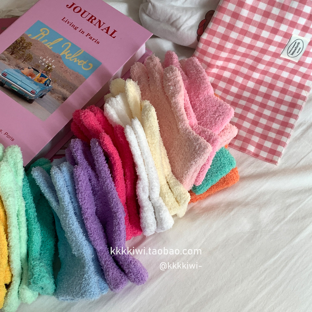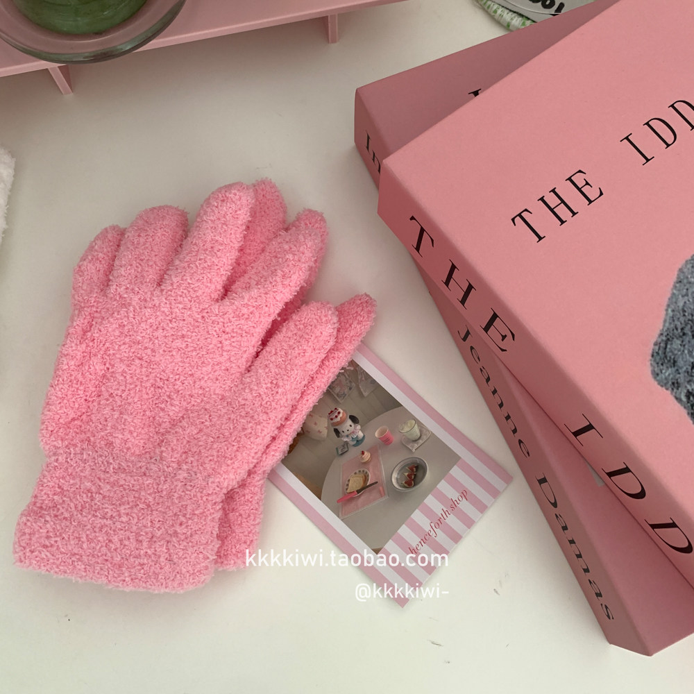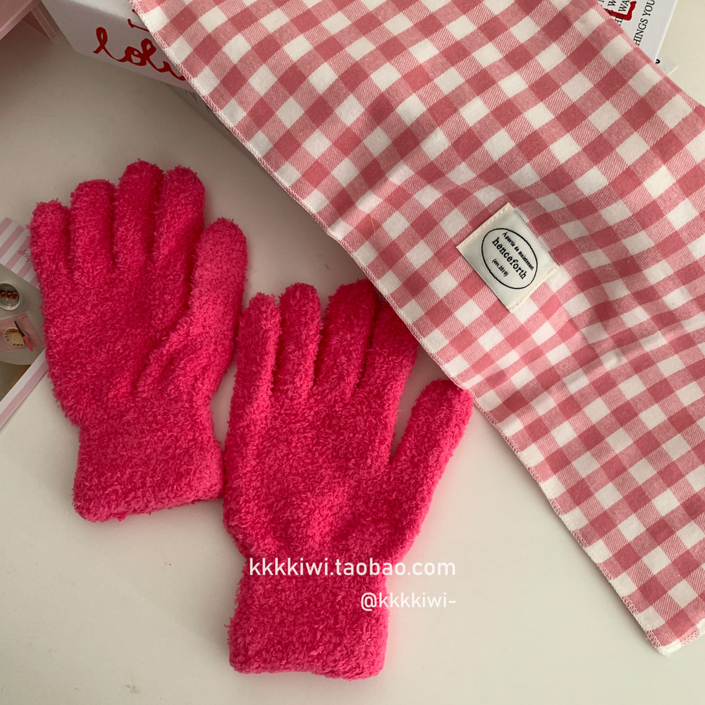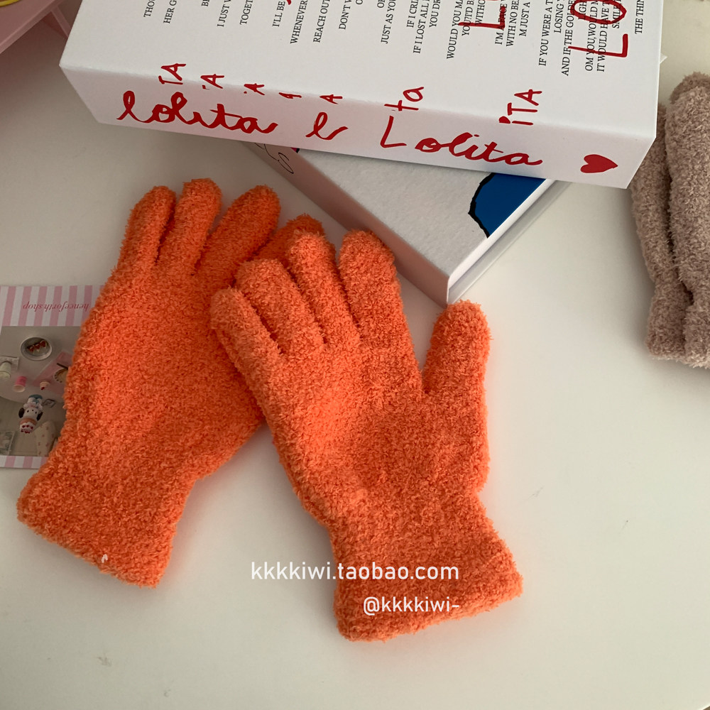 Baby Blue ~ корейский плюш, который не любит!Модные и милые острые -to -tip осени и зимние теплые коралловые бархатные перчатки
