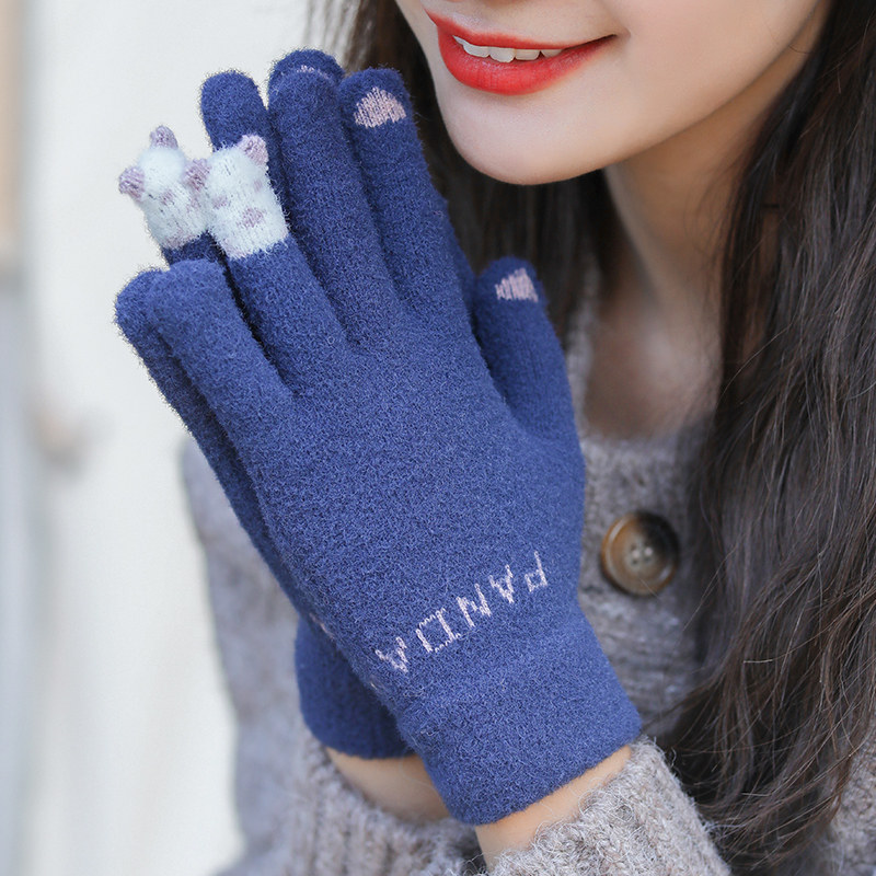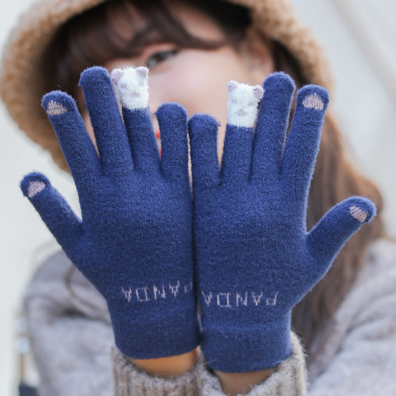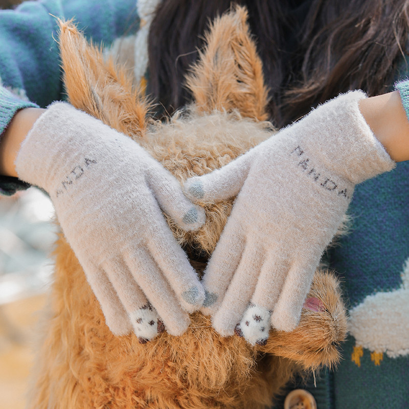 Перчатки, зимний милый утепленный удерживающий тепло шерстяной трикотажный комплект для школьников и студентов, с медвежатами, коллекция 2023