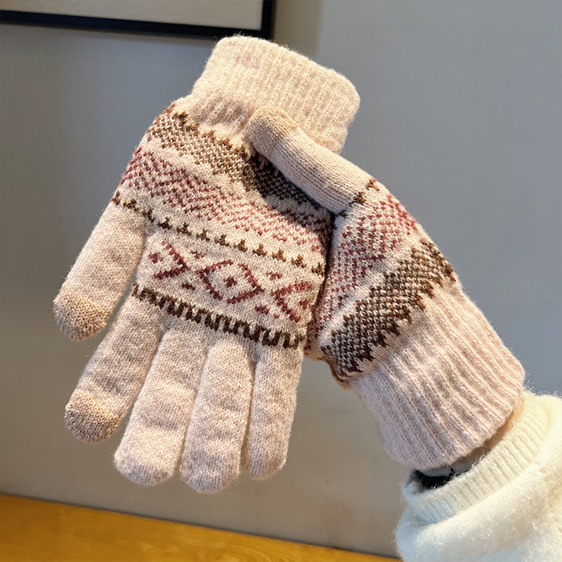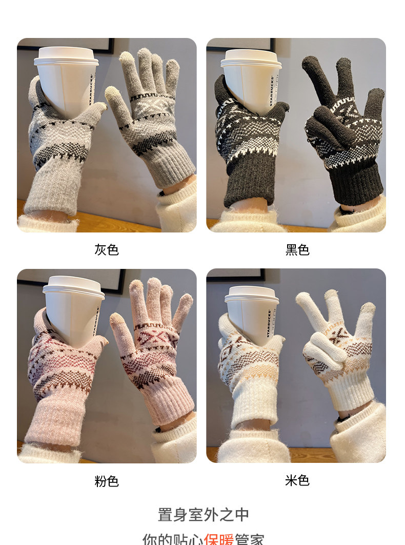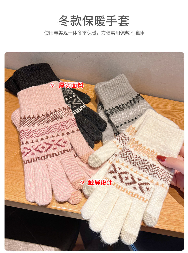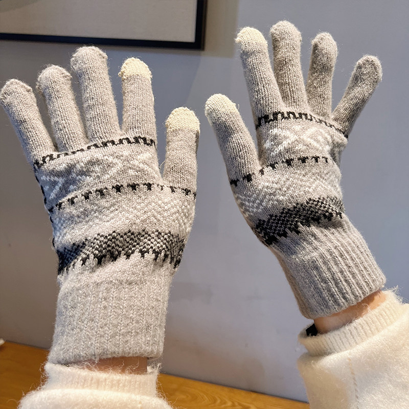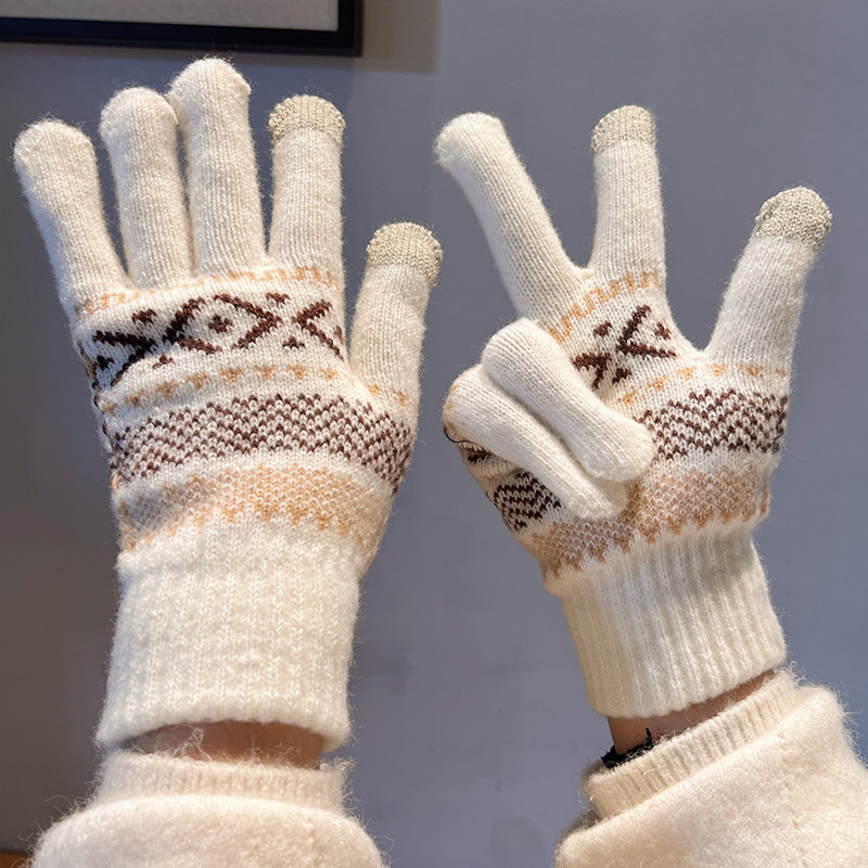 Демисезонные перчатки, демисезонный удерживающий тепло трикотажный модный дорожный шерстяной милый комплект, коллекция 2023, в корейском стиле