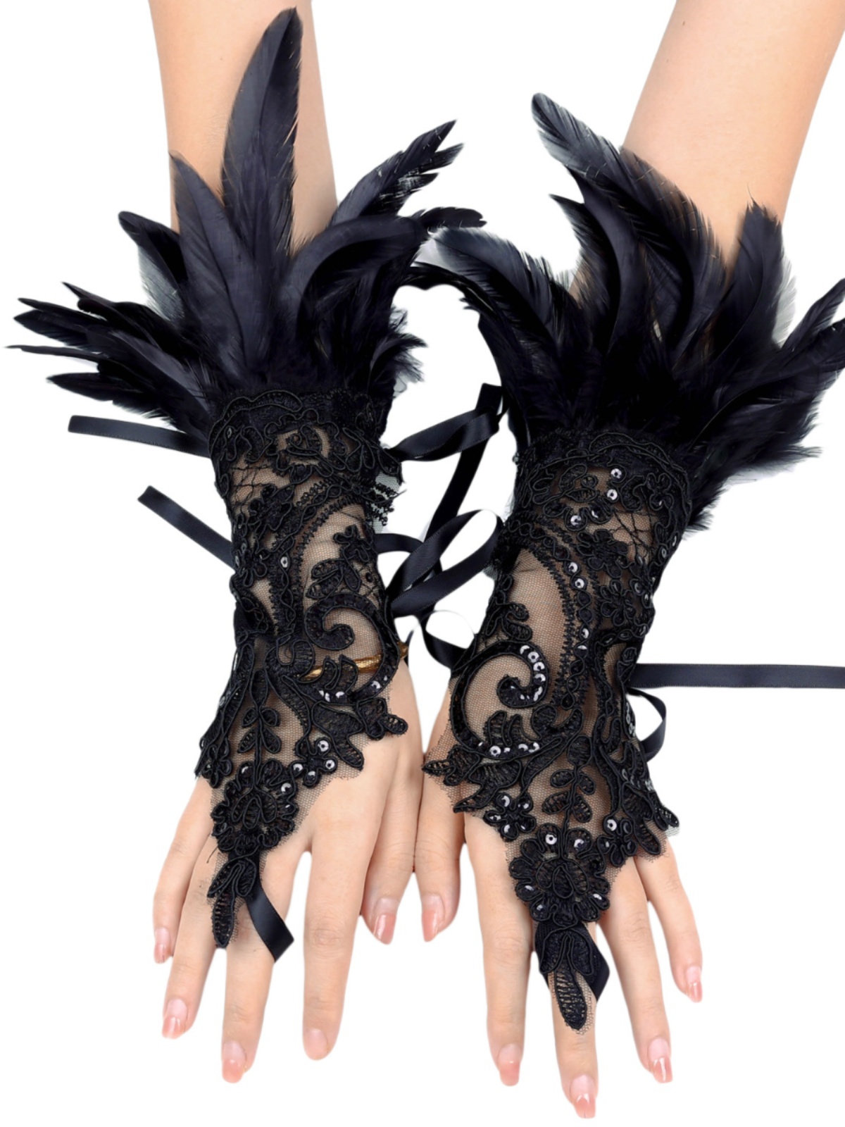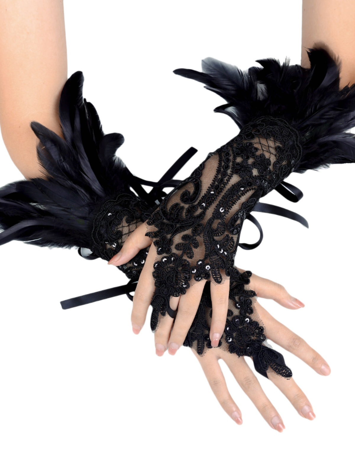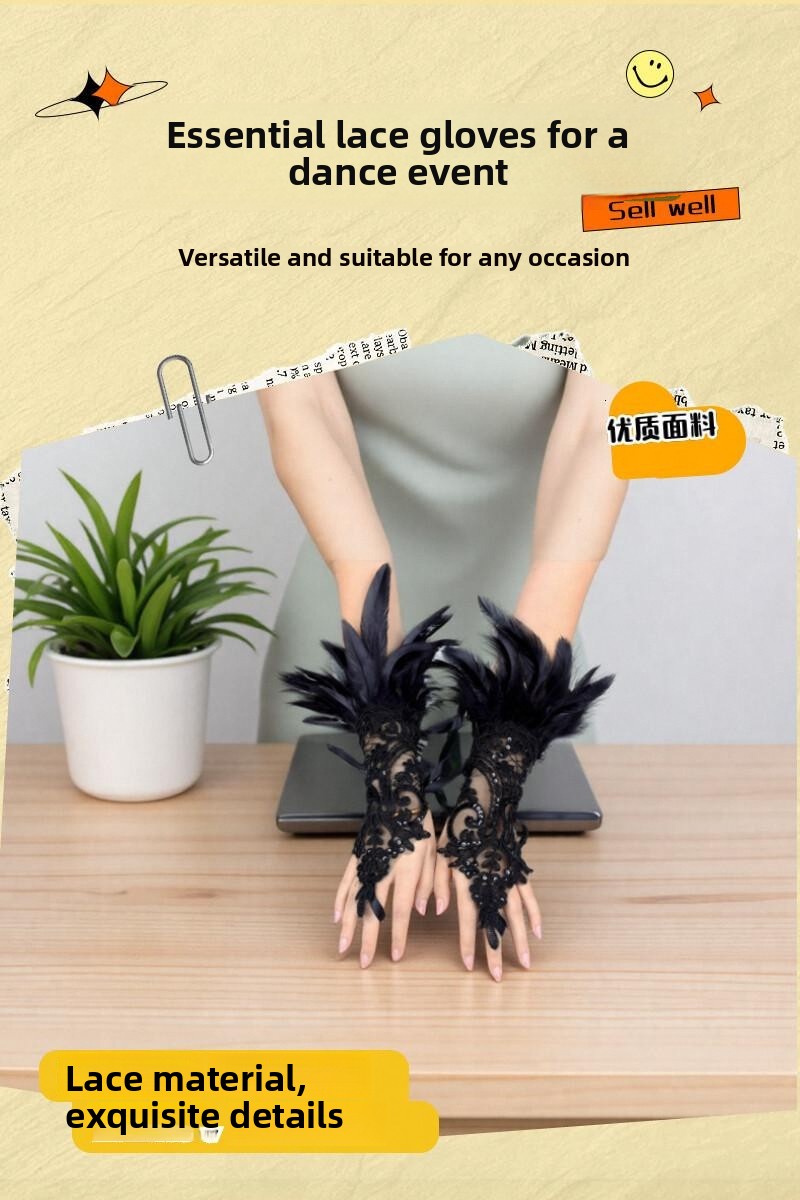 Тысяча Рождественских Перьев Тысяча Волос Перчатки Ужин Танец Сценический Танец Черные Кружевные Рукава Аксессуары Для Женщин
