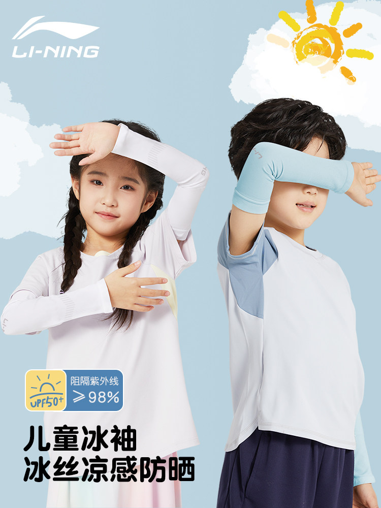 Li Ning, детский защитный рукав, летние шелковые дышащие детские нарукавники для мальчиков, защита от солнца, защита от ультрафиолета