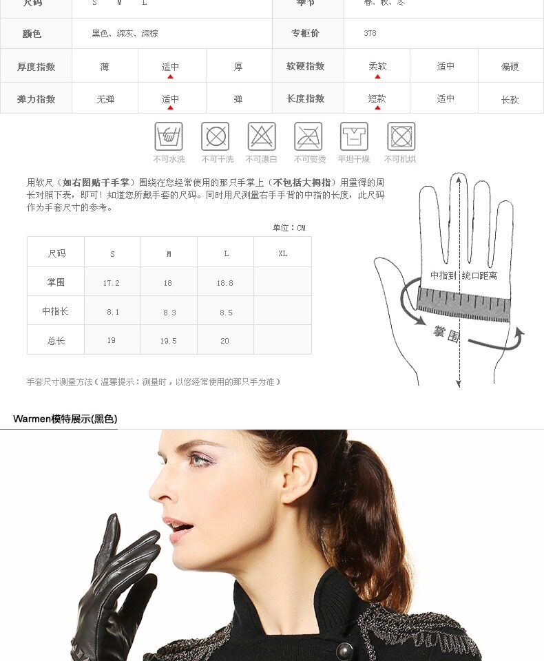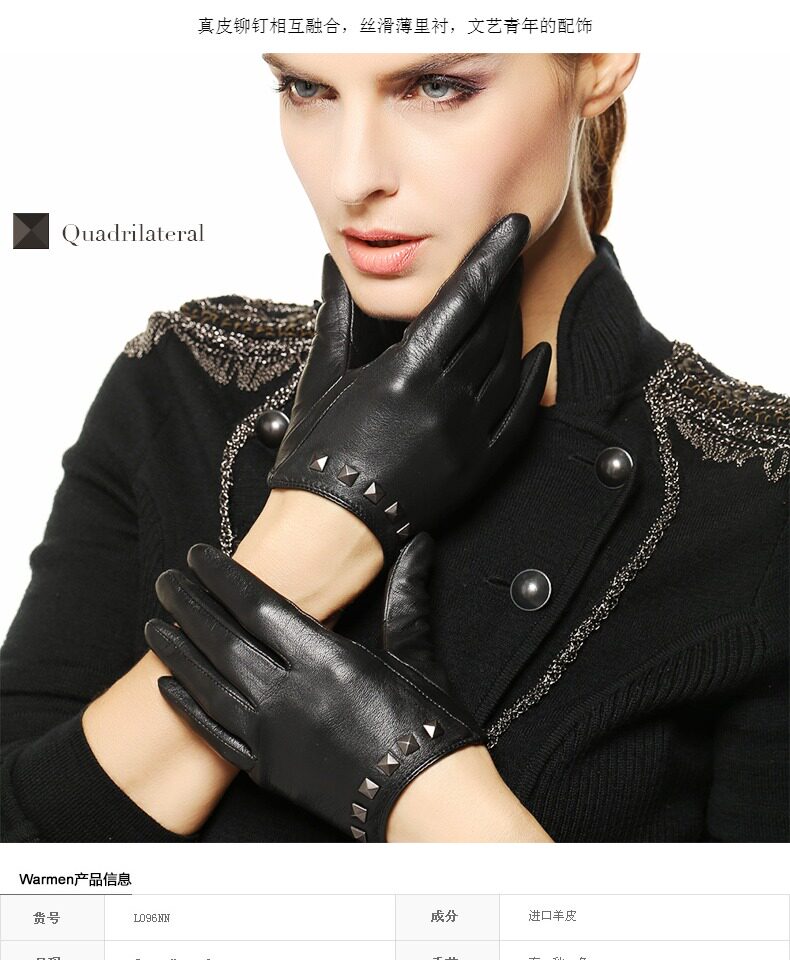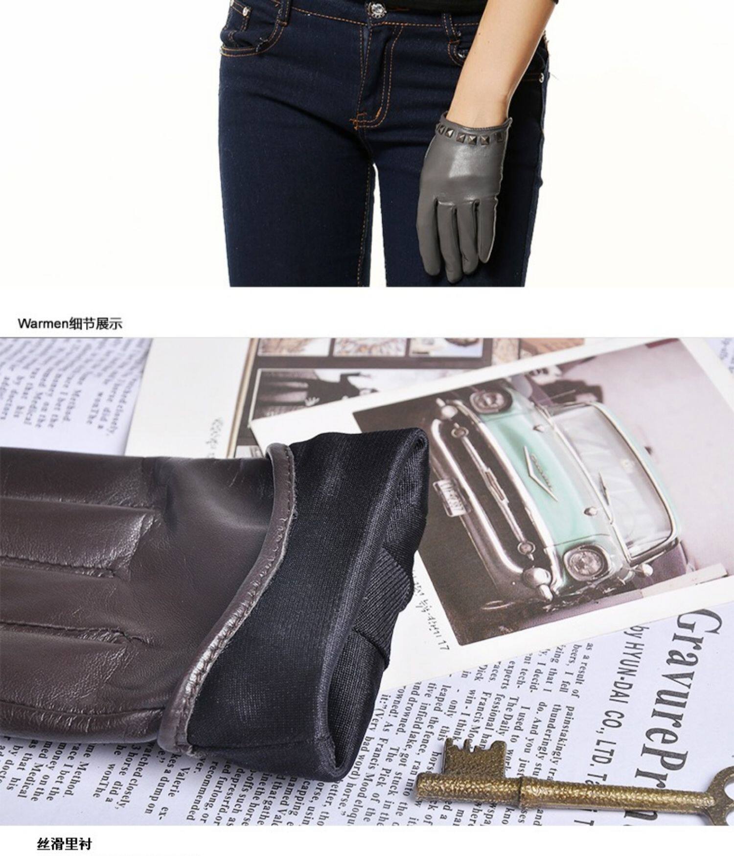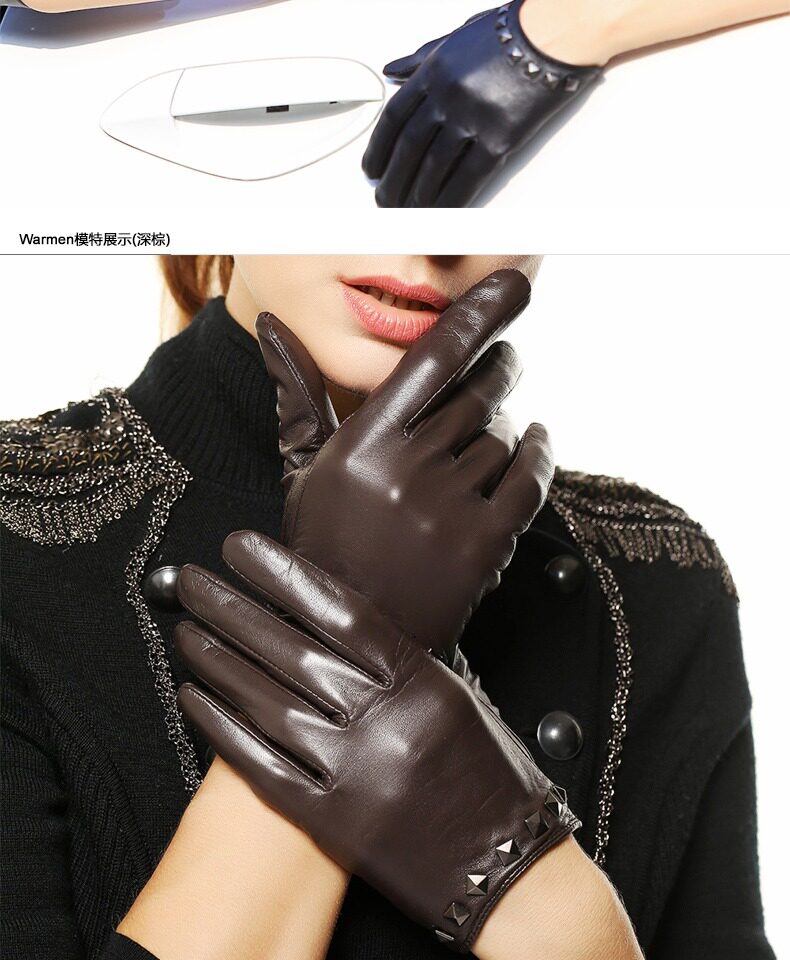 WARMEN Перчатки, модный удерживающий тепло тонкий комплект, в корейском стиле, из натуральной кожи, L096