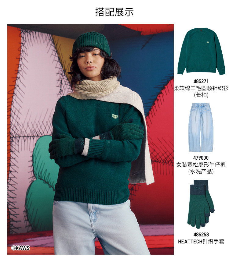 Мужские и женские вязаные перчатки UNIQLO KAWS HEATTECH/25, осенне-зимний новый стиль 485258