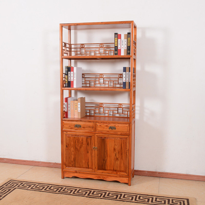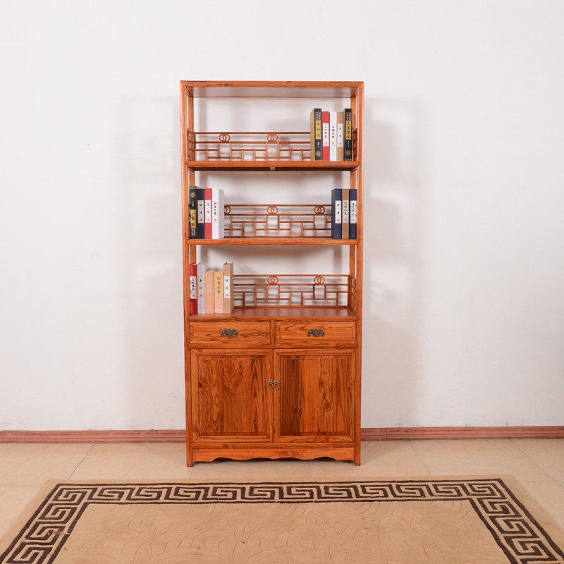 Сплошной древесина многослойная полка полки китайский стиль антикварного чая полки простая трехслойная с насосной дверью Богу полка