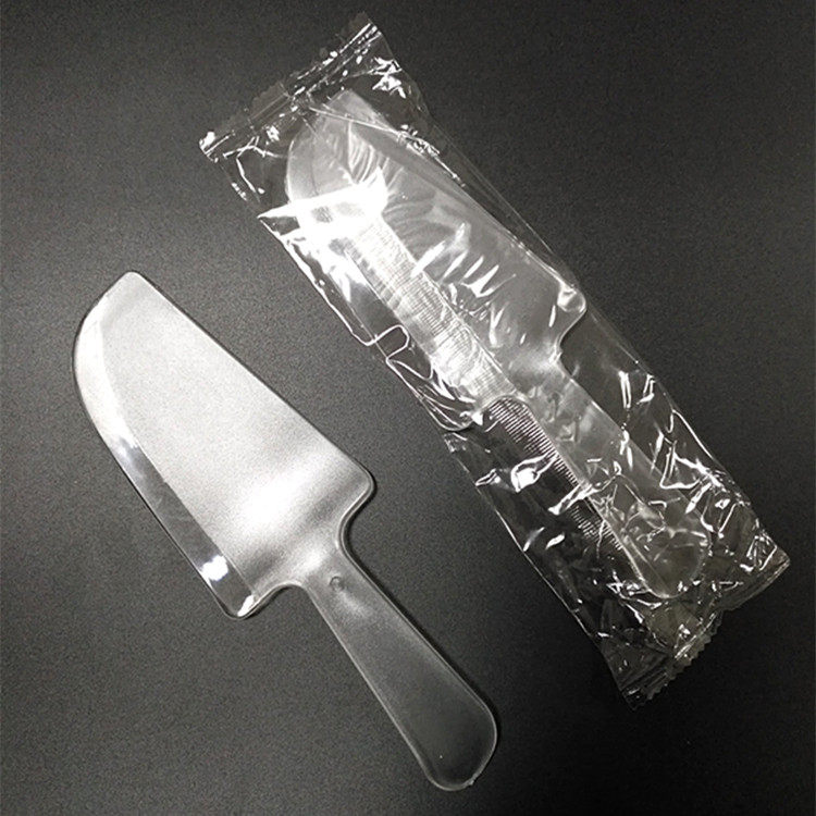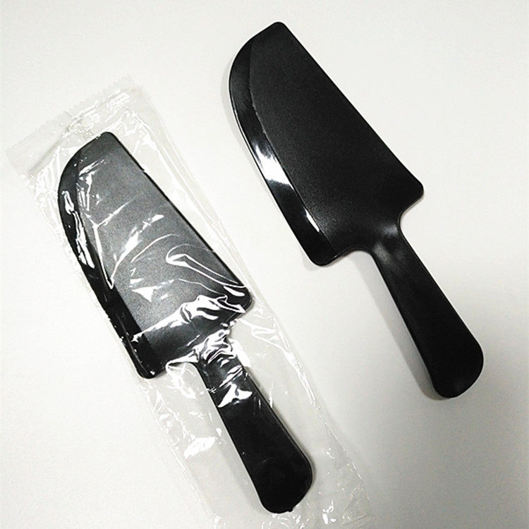 Бесплатная доставка одноразовая нож для торта, независимый нож для резки с фруктами, черный прозрачный пластиковый режущий нож с большим ножом.