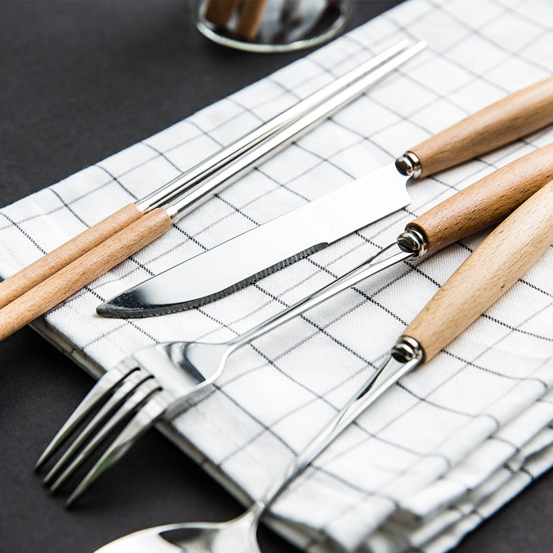Посуда из нержавеющей стали, комплект, палочки для еды, японская портативная вилка для фруктов, ложка, 3 предмета