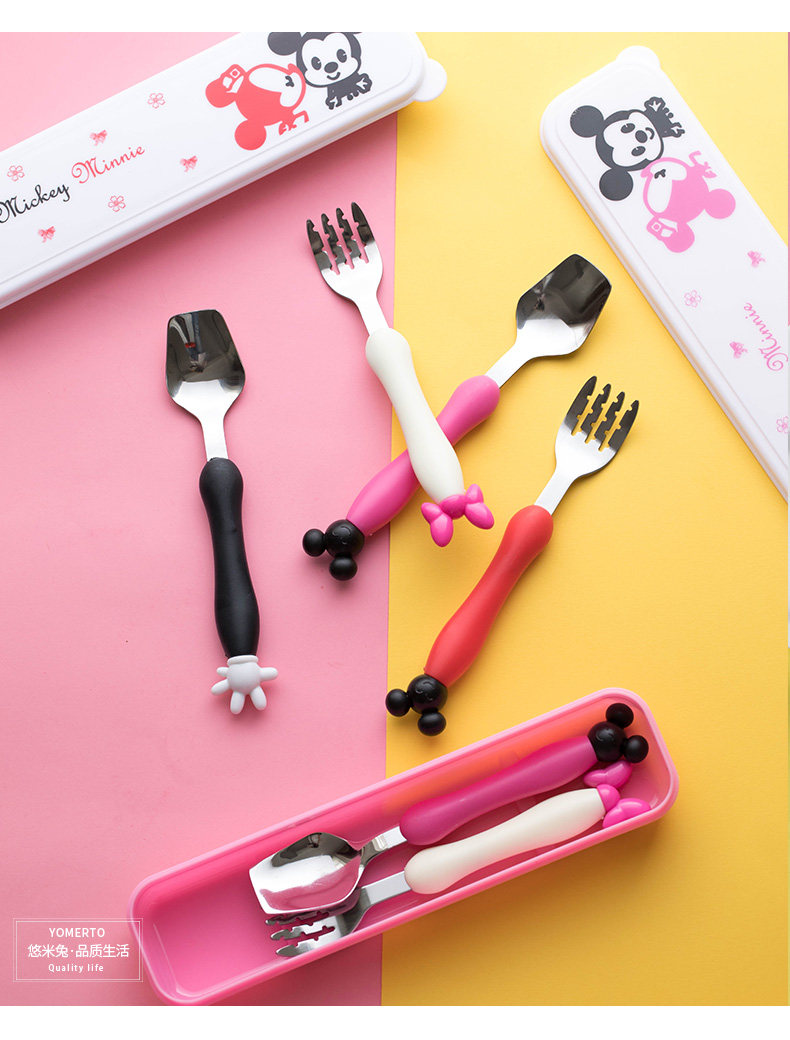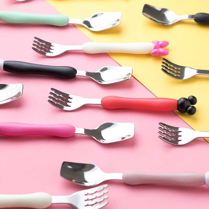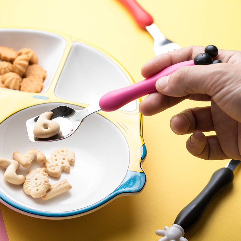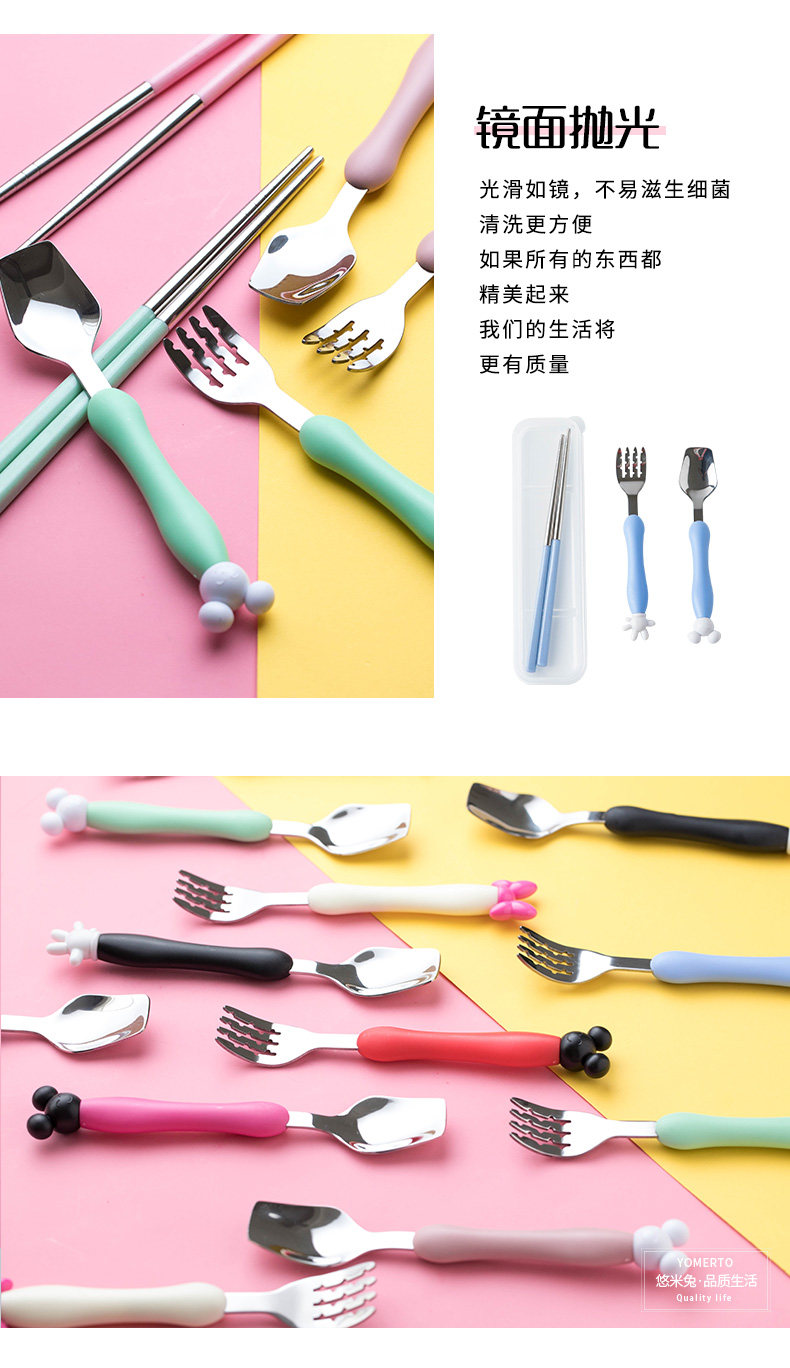 Мультяшная детская портативная посуда из нержавеющей стали для кормления, креативная ложка, вилка, милый комплект