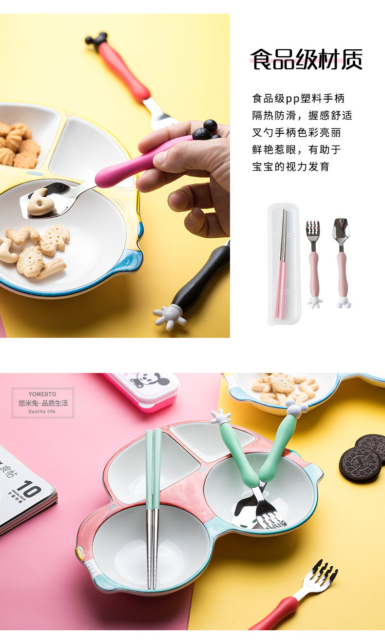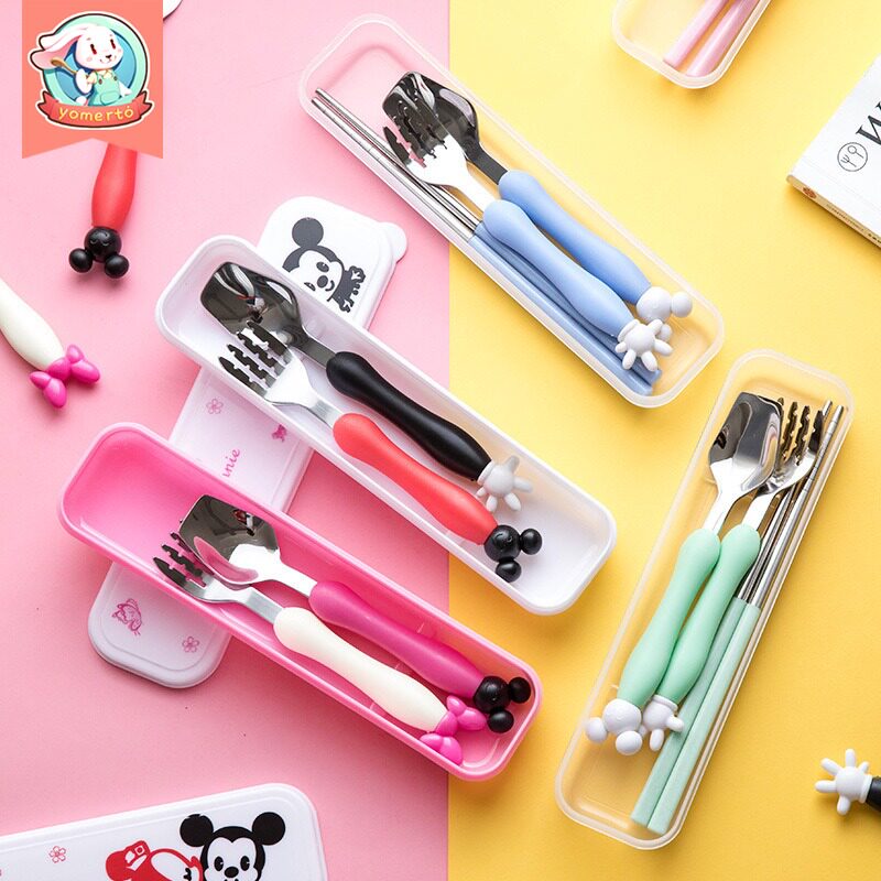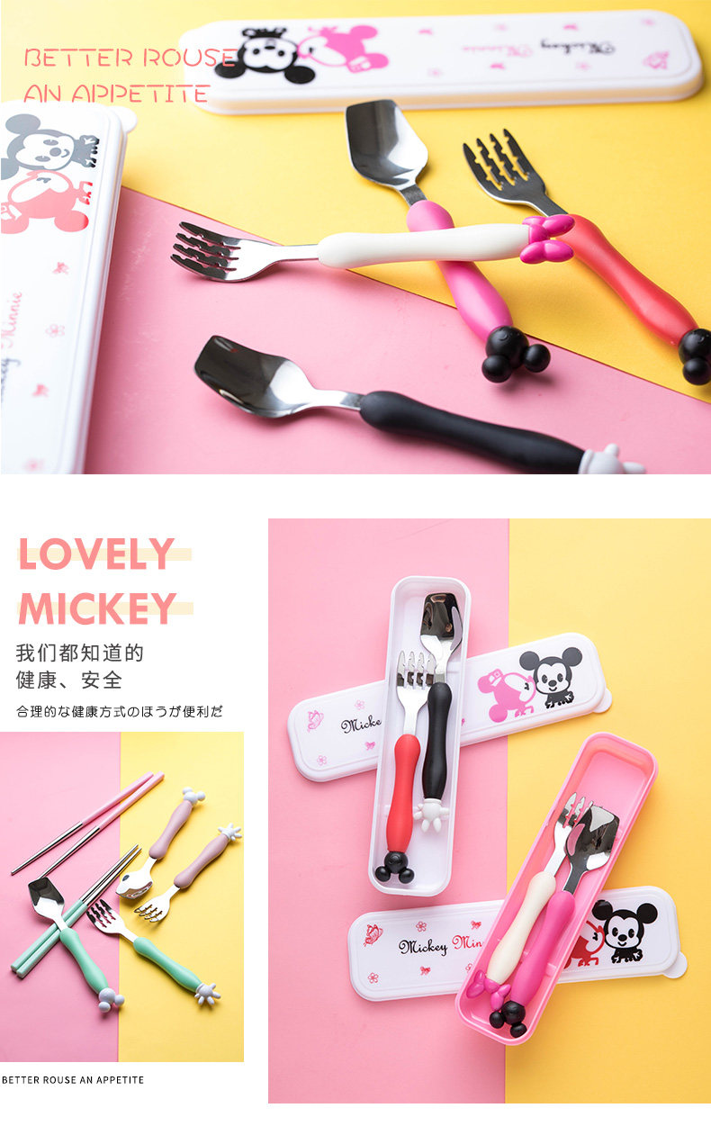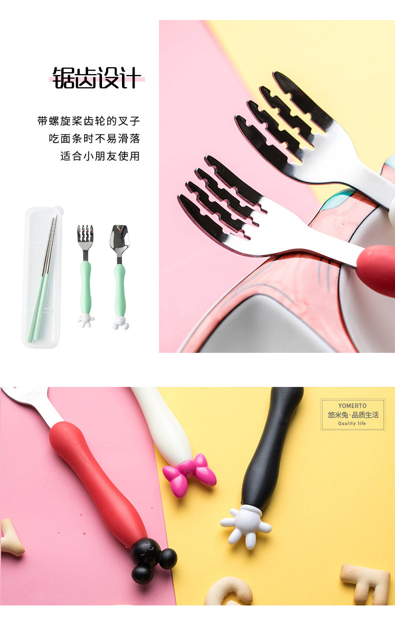 Мультяшная детская портативная посуда из нержавеющей стали для кормления, креативная ложка, вилка, милый комплект