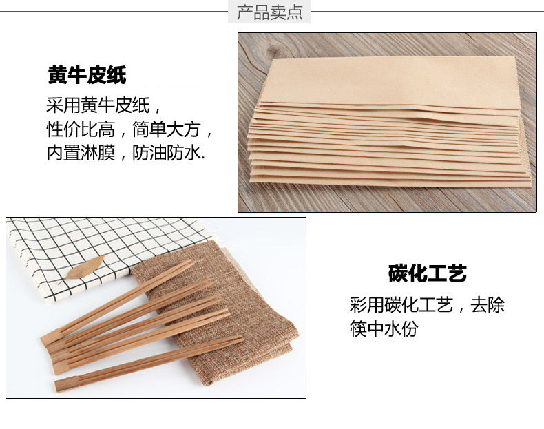 奇典 Одна -кожаная бумажная палочка для бумаги, бамбук, дерево, углерод, палочки для еды, ножи, ложная посуда, упаковочная бумага для ресторана.