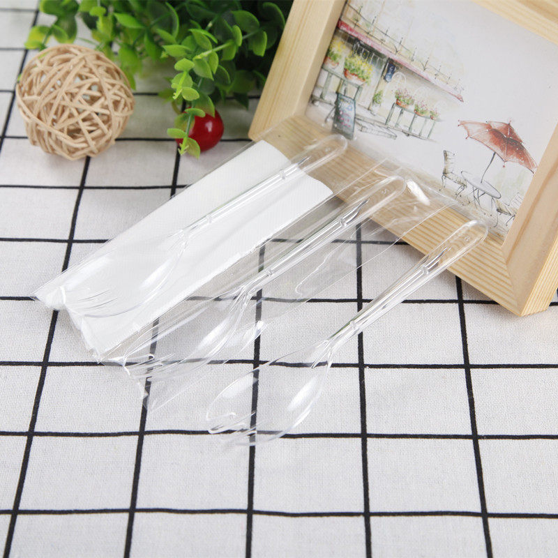 Одноразовая десертная ложка, вилка, салфетки, упаковка, 16см