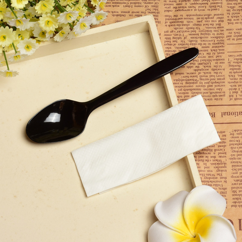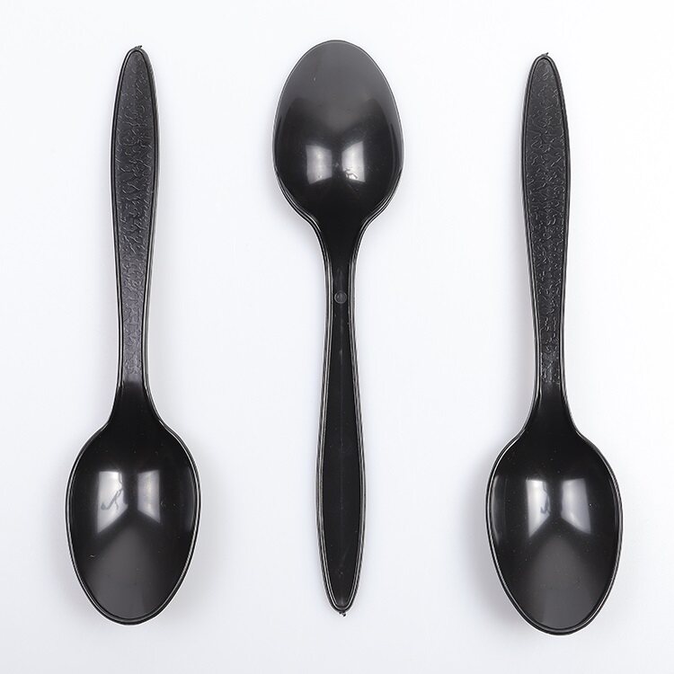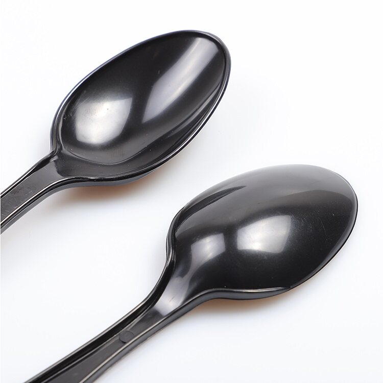 Одноразовая черная пластиковая ложка для мороженого, увеличенная толщина