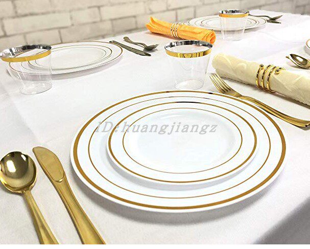 Одноразовый пластиковый золотой белый комплект, 36