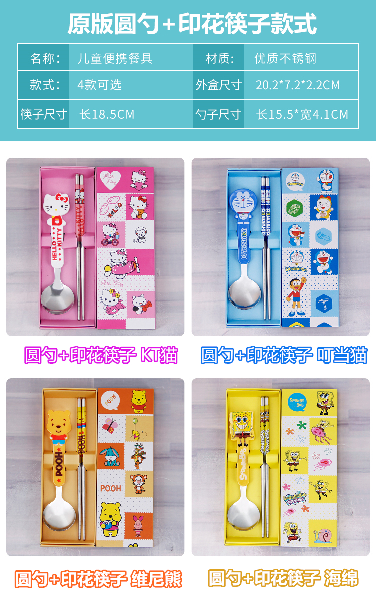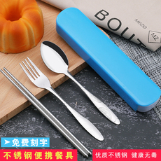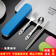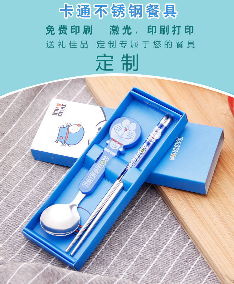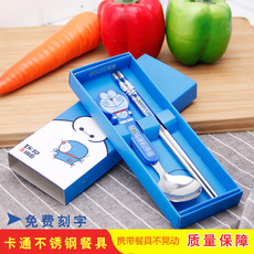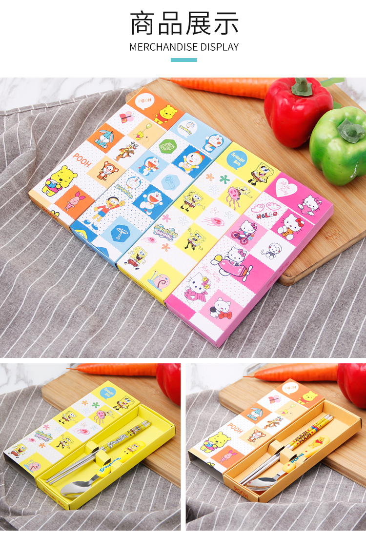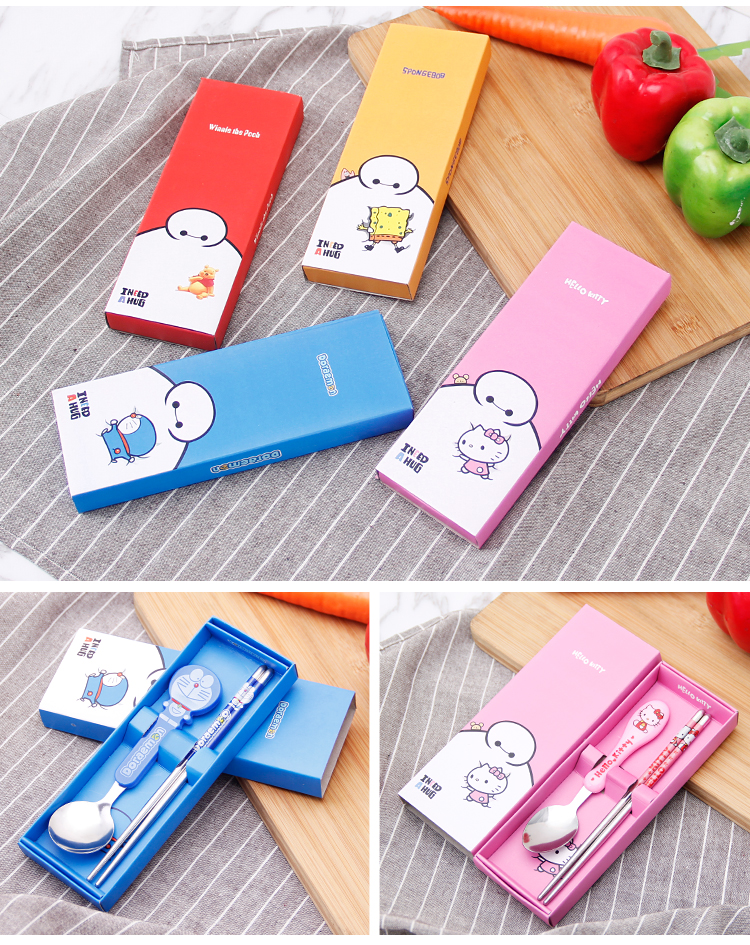 Портативные палочки для еды, ложка, комплект, посуда из нержавеющей стали, вилка для школьников, милая коробка для хранения, 3 предмета, делается под заказ