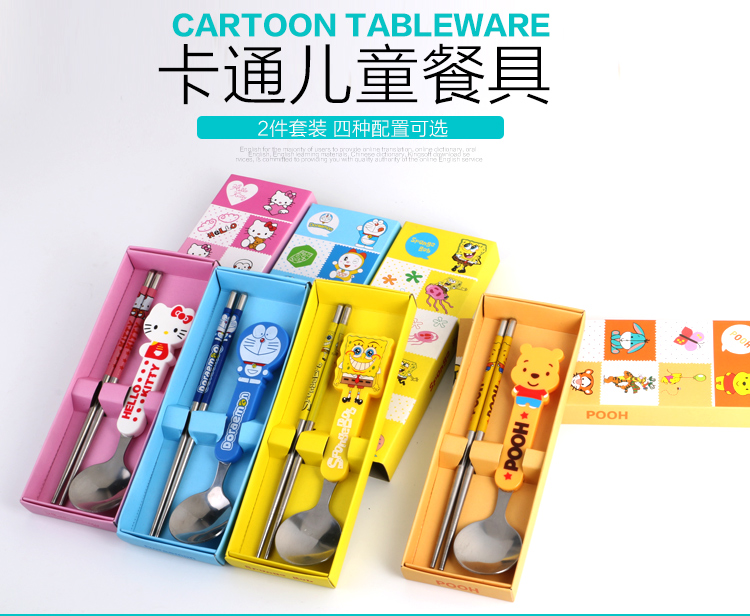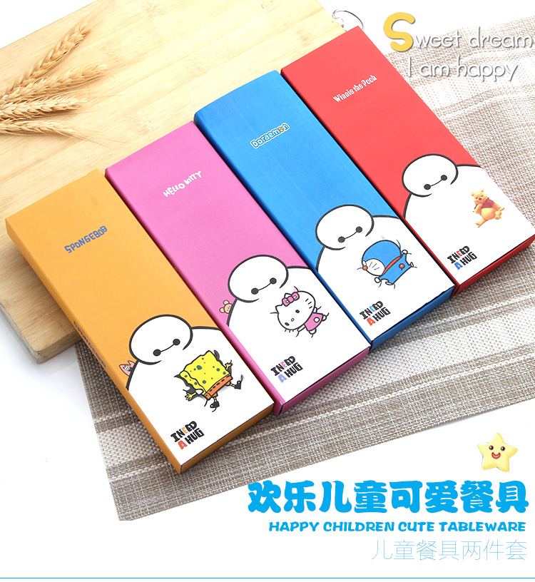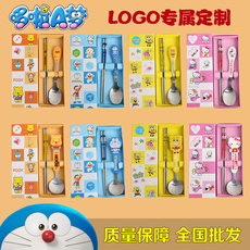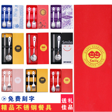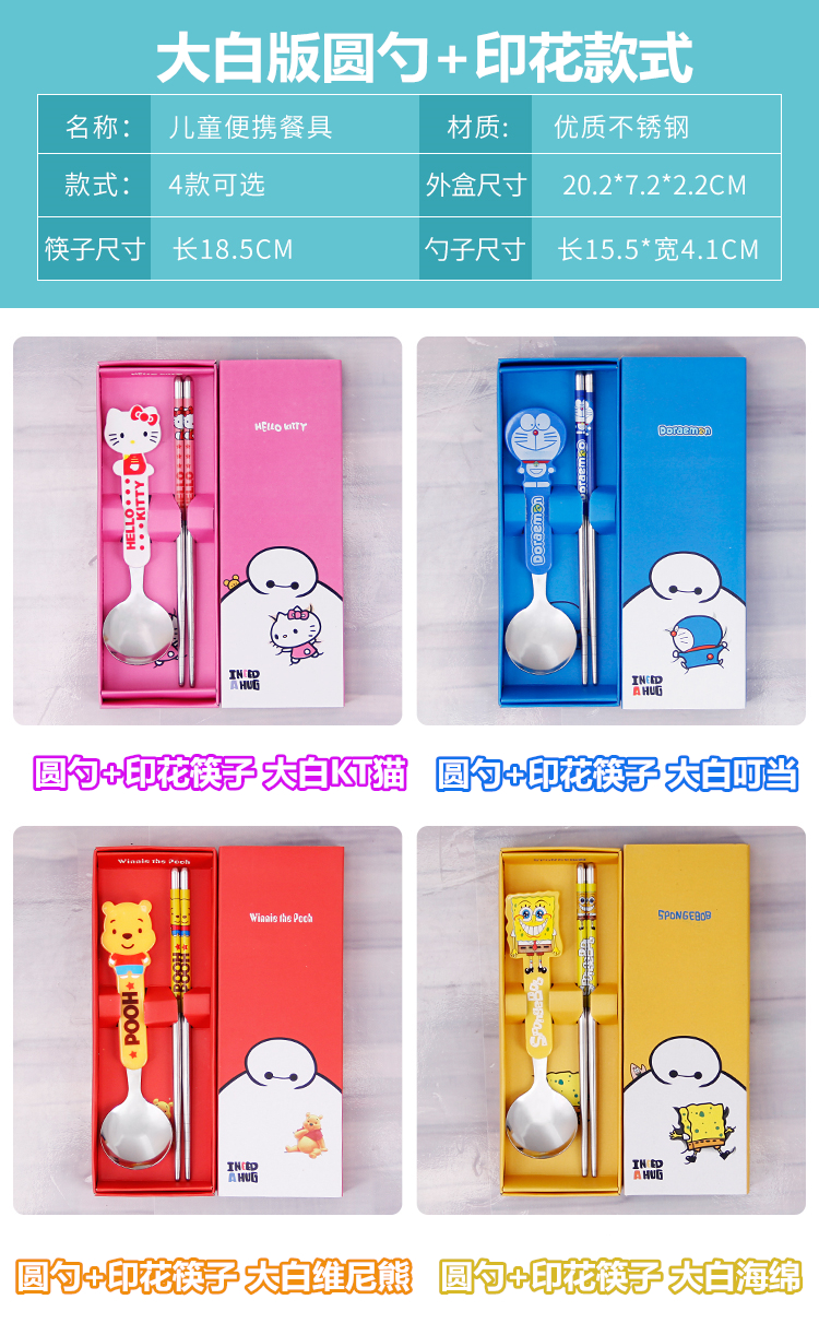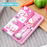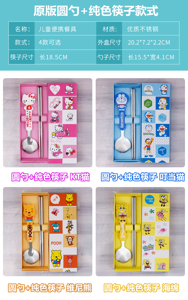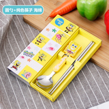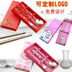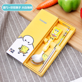 Портативные палочки для еды, ложка, комплект, посуда из нержавеющей стали, вилка для школьников, милая коробка для хранения, 3 предмета, делается под заказ