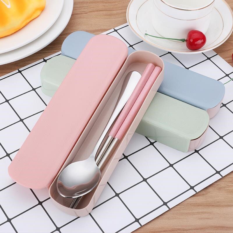 Комплект для школьников и студентов, ложка для еды, посуда для путешествий, палочки для еды, 3 предмета