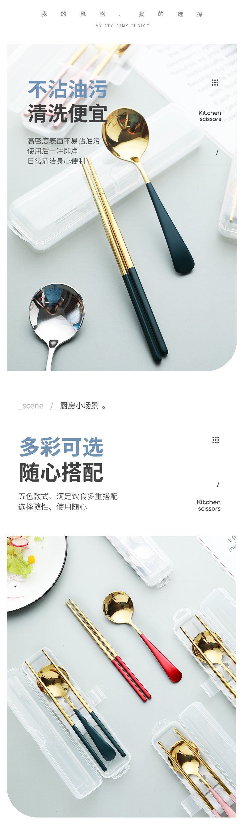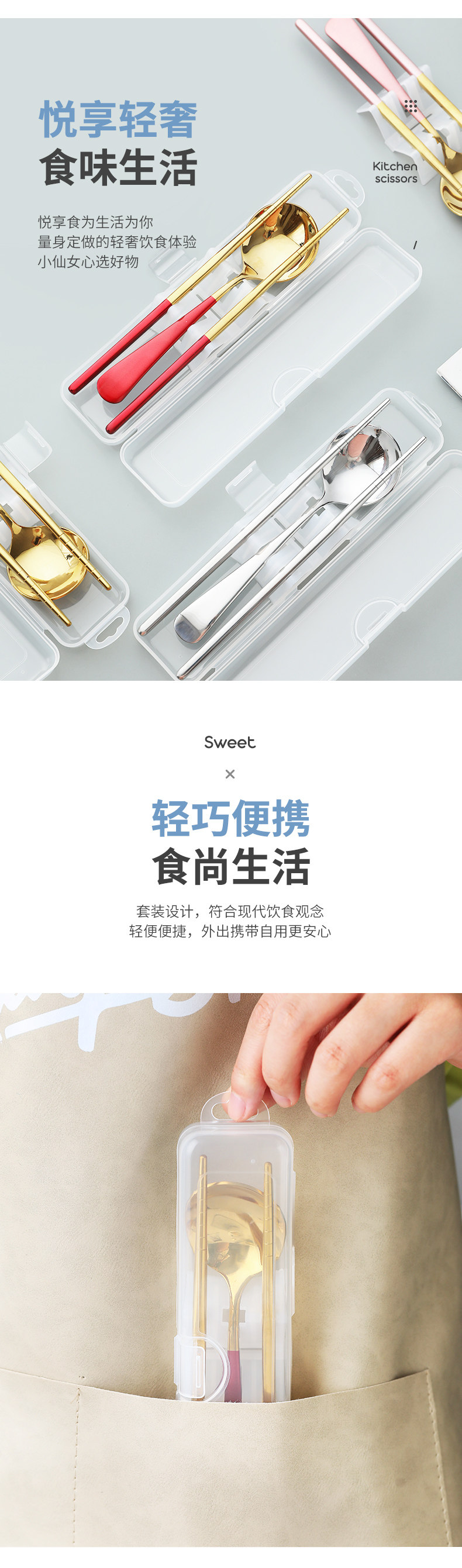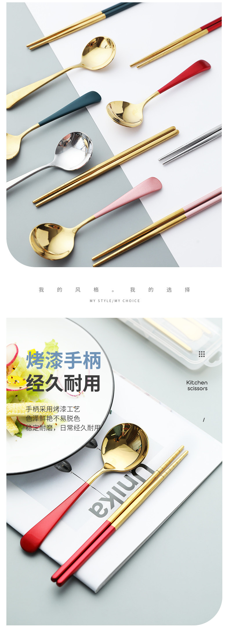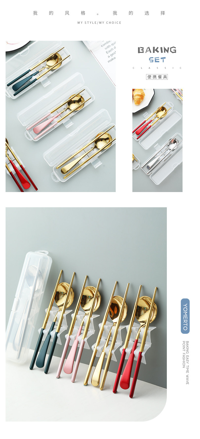 Палочки для еды, ложка, комплект, портативная брендовая милая посуда из нержавеющей стали для школьников и студентов