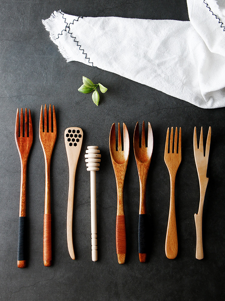 Ложка из натурального дерева, вилка, японская посуда для домашнего использования, кофейная палочка для смешивания, домашний декор