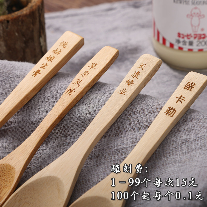Нет лака бамбуковой ложки ложки, пакетная ноль медовая ложка, кофейная ложка, десертный десерт, ложка, индивидуальная гравировка