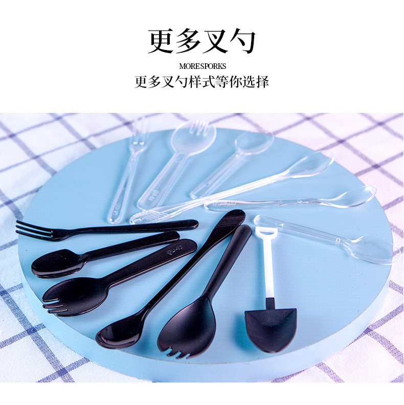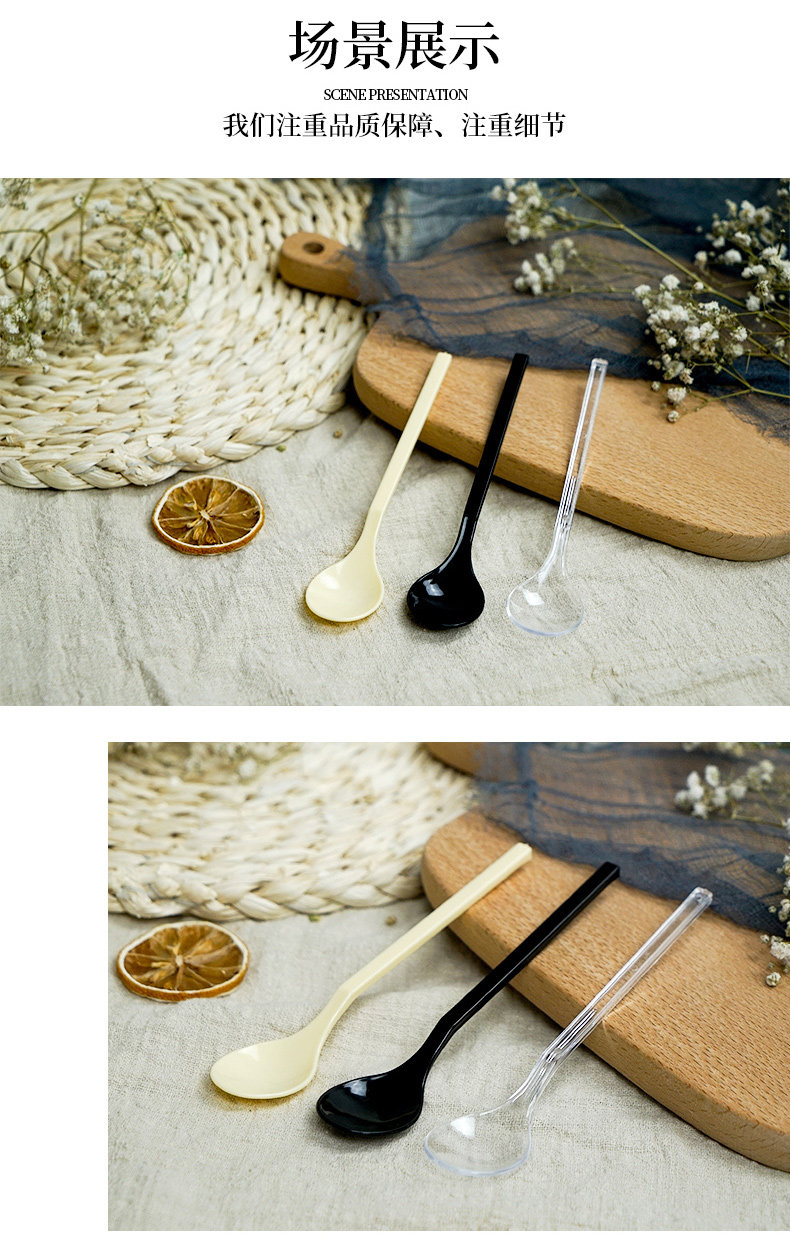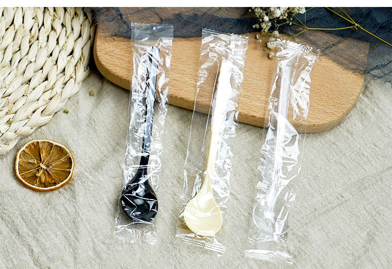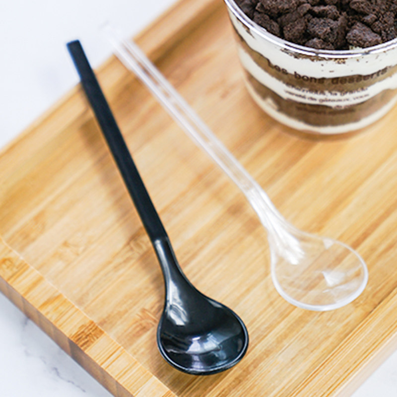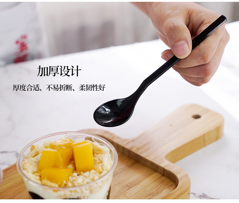Одноразовая пластиковая ложка, черный прозрачный желтый креативный мусс, милая упаковка для коммерческого использования для гостиной