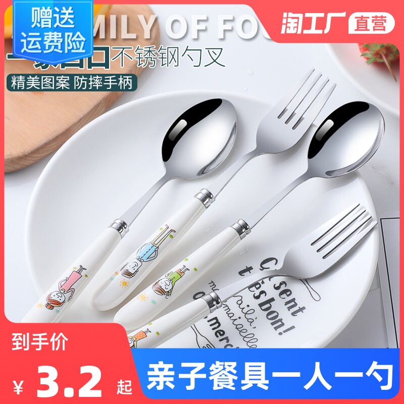 Посуда из нержавеющей стали, ложка, милая вилка, высококлассный портативный комплект для матери, семейный стиль