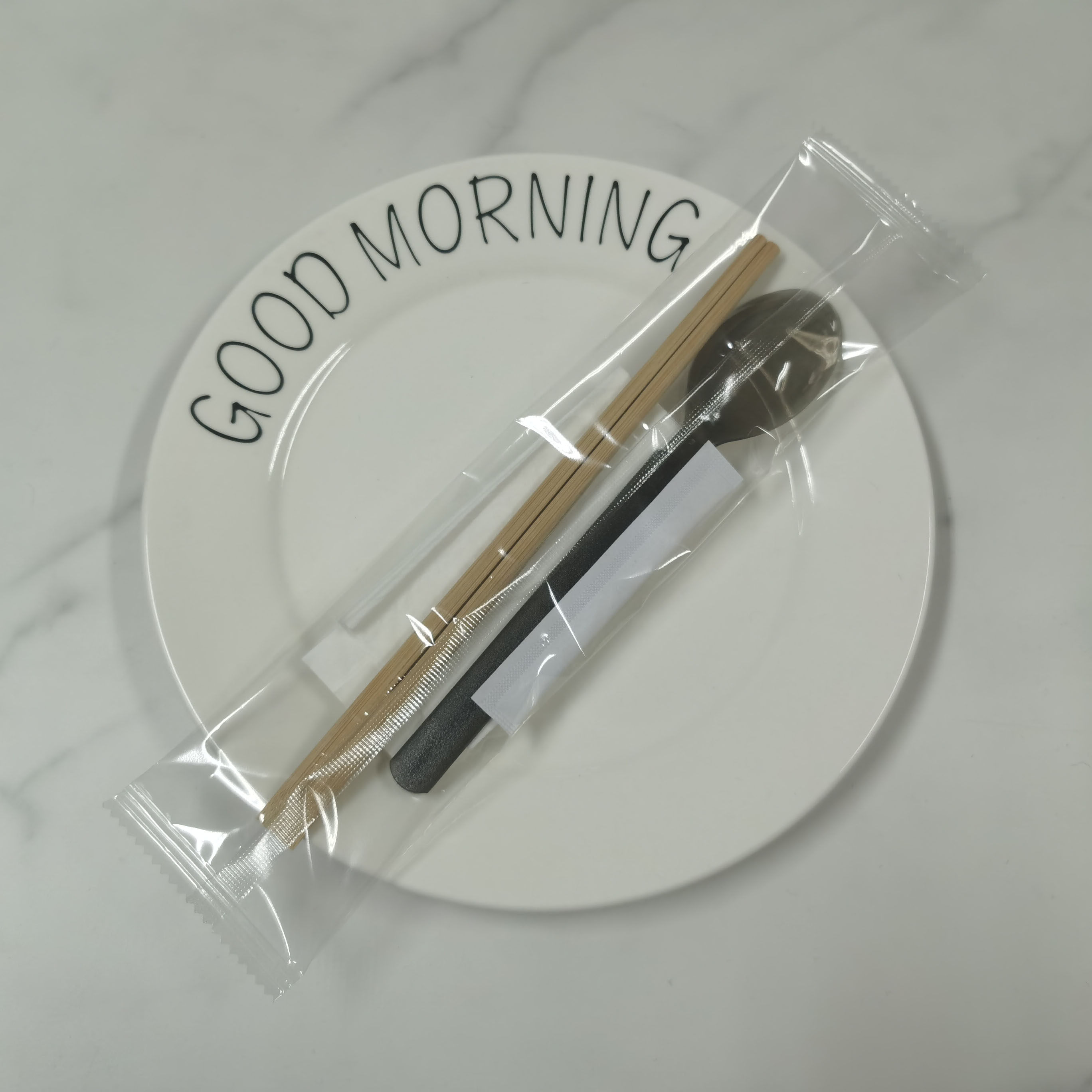 Одноразовая упаковка, пластиковая ложка, салфетки, комплект, 4 предмета