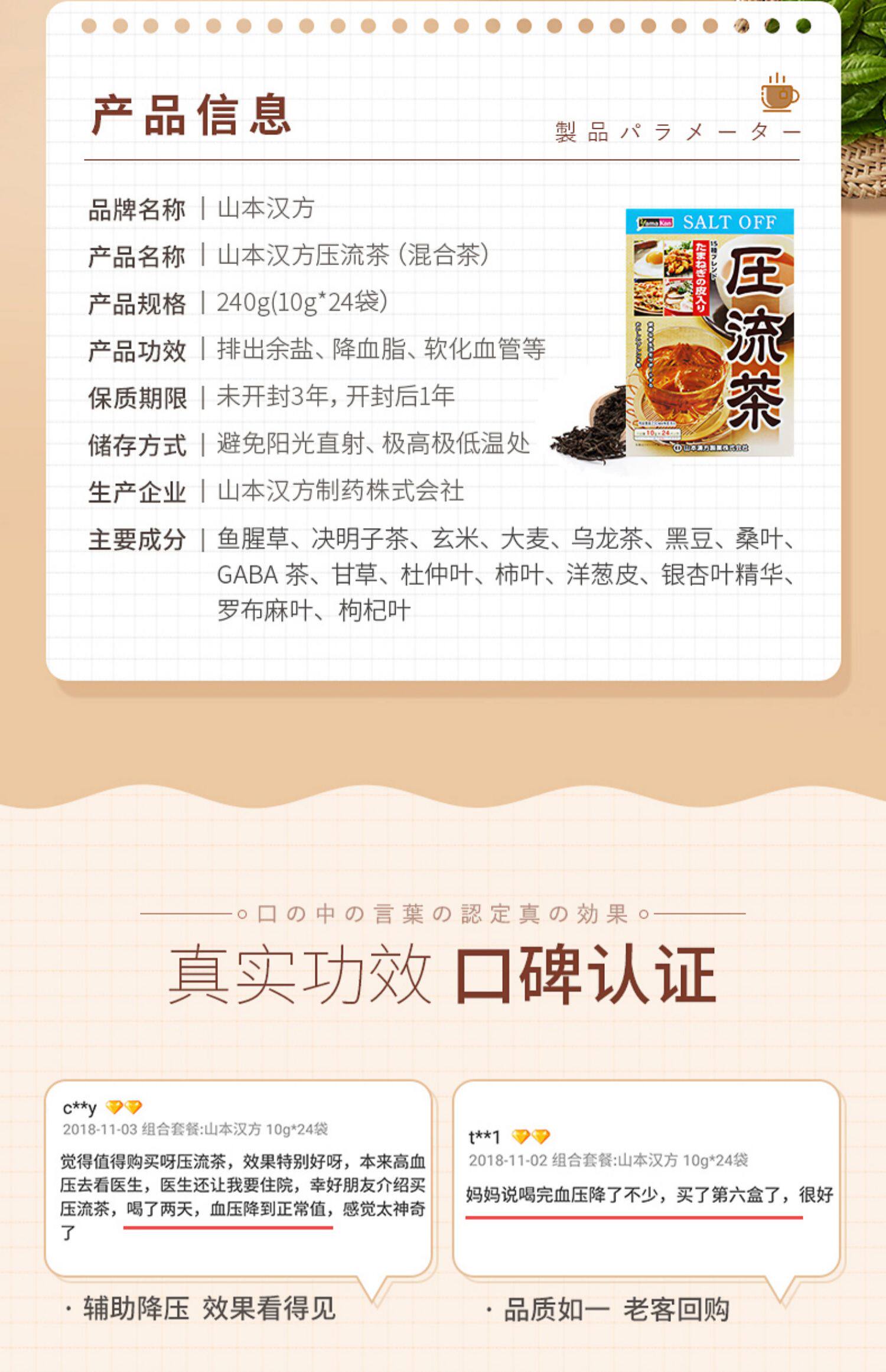 山本汉方 Япония импортированное давление в здоровье чая вспомогательная экскреция по выходу против давления 10 г*24 сумки