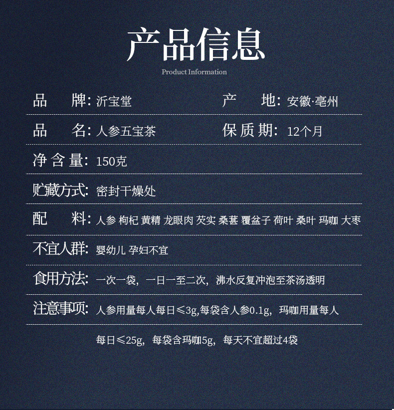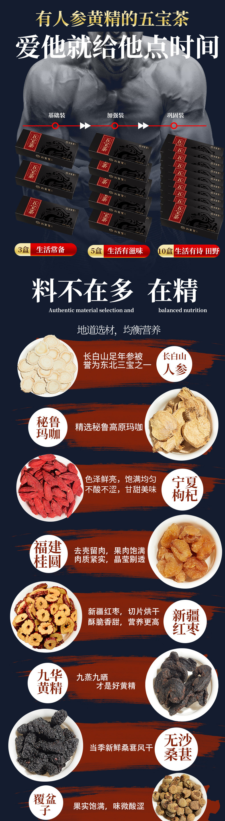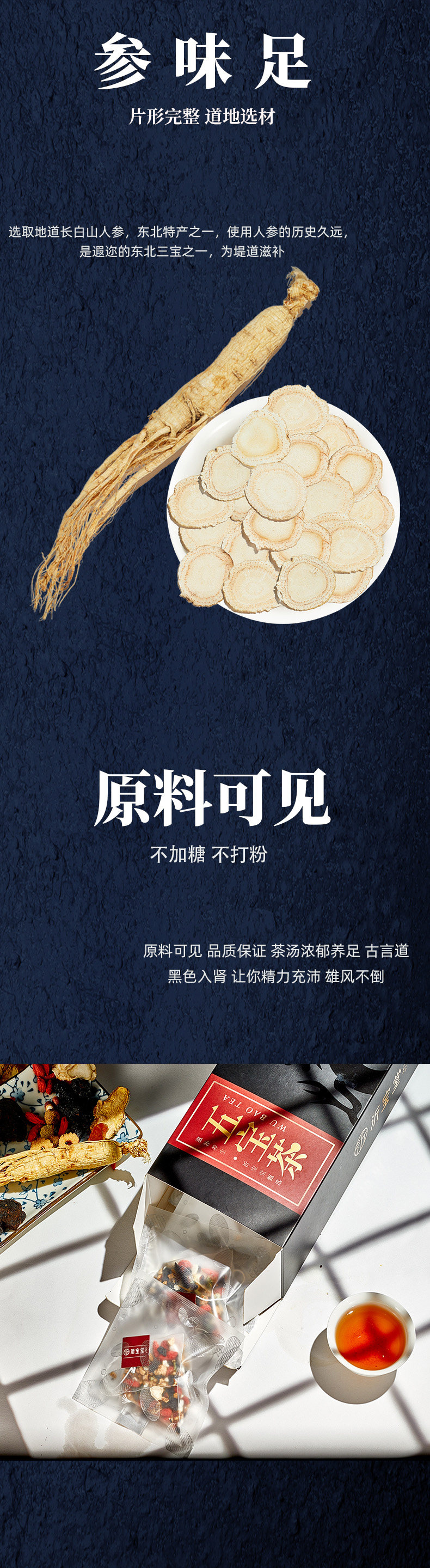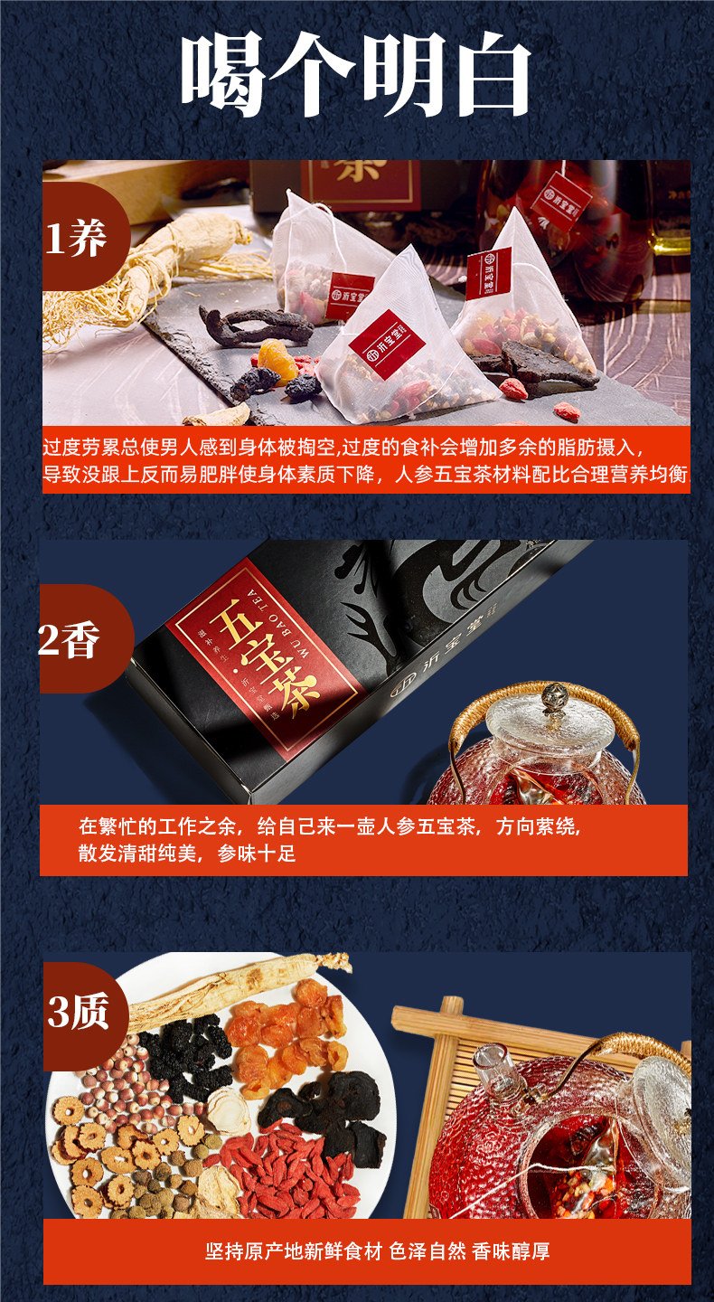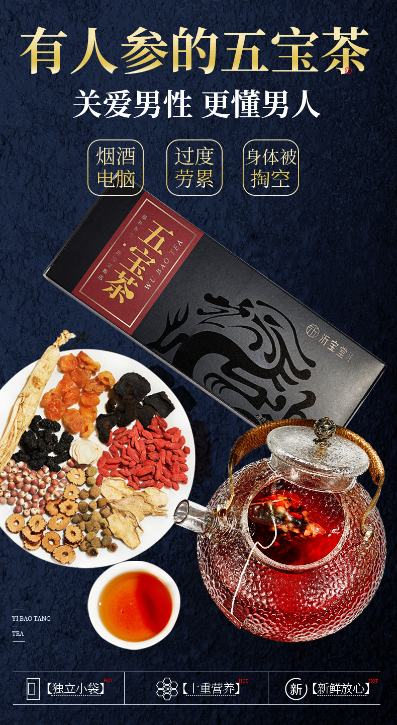 Пять сокровищница чай мужчина женьшень Хуан Цзин Санг, чай волка, мужчина, бабао, чай
