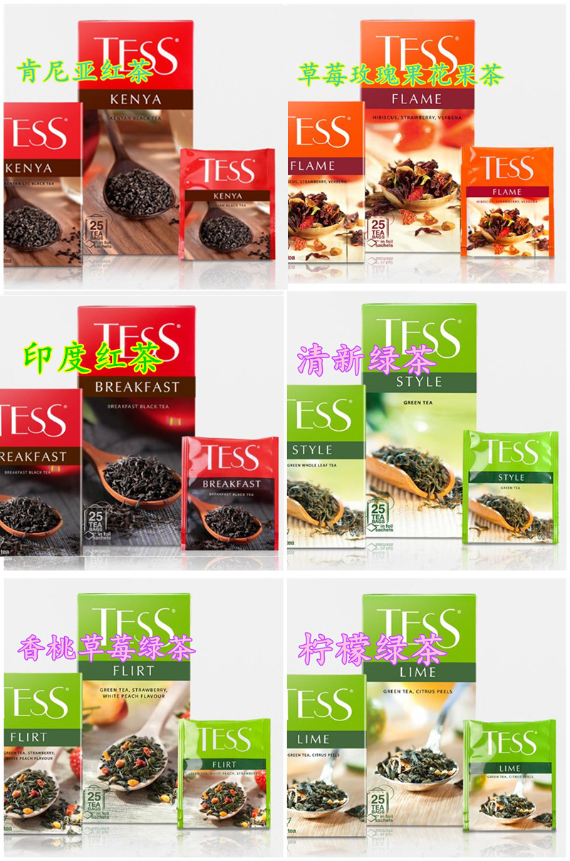 Импортированная Россия【Tess】Brand Flower Tea, прямоугольный чайный пакет, разнообразные фруктовые вкусы, каждая коробка содержит 25 чайных булочек - фруктовый вкус, каждая коробка с чистым содержанием составляет 37,5 грамма.