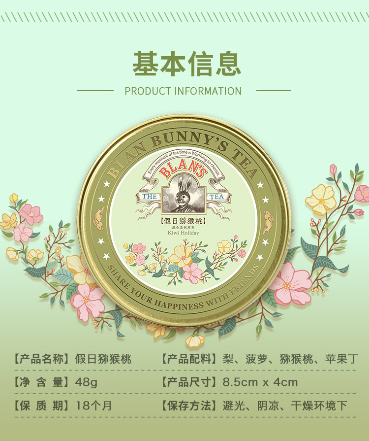 Blanbunny Bran Rabbit Holiday Kiwi Fruit Camellia Tea Girl Tea Tea дает консервированные подарки