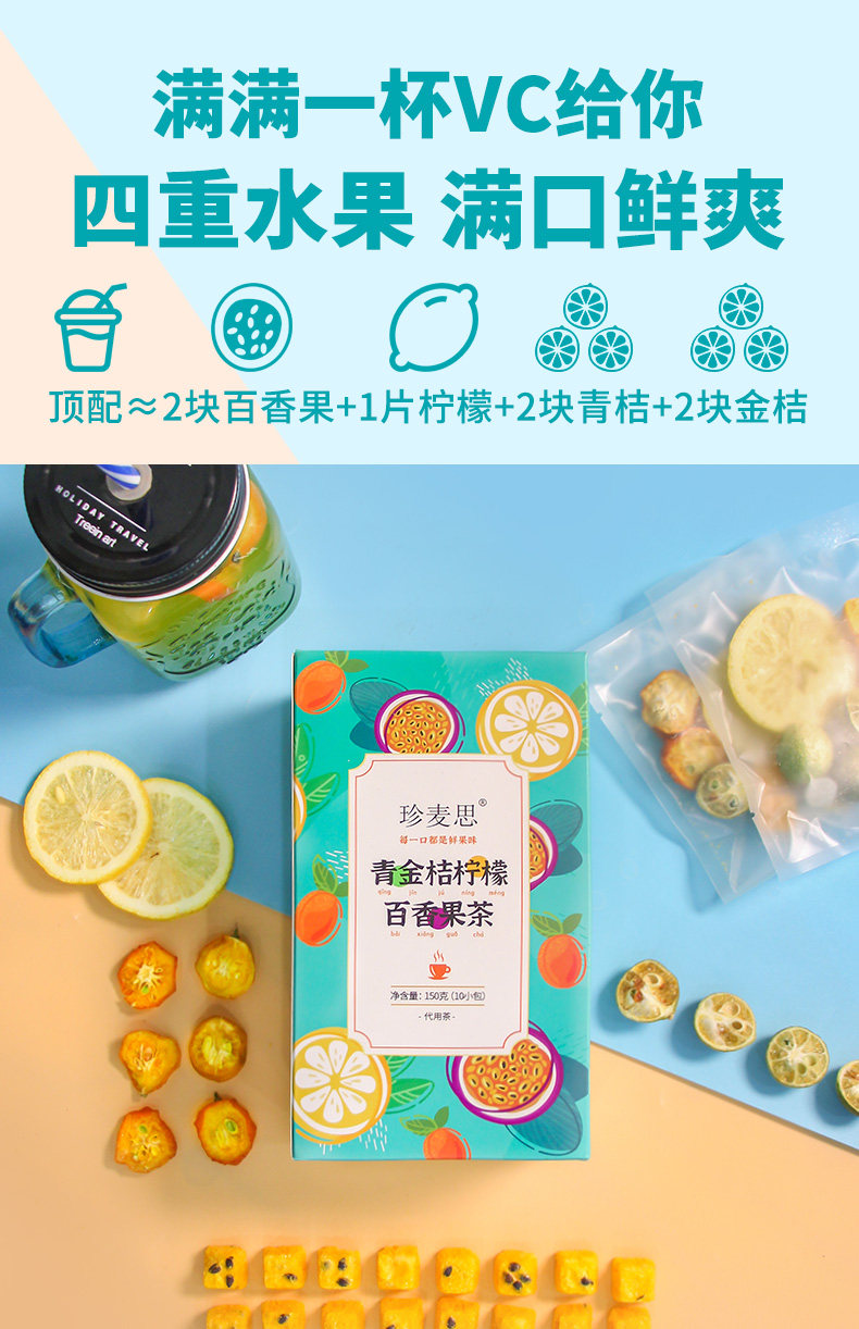 Фруктовый чай с кумватом с маракуйей, летний чай в пакетиках, холодный чай