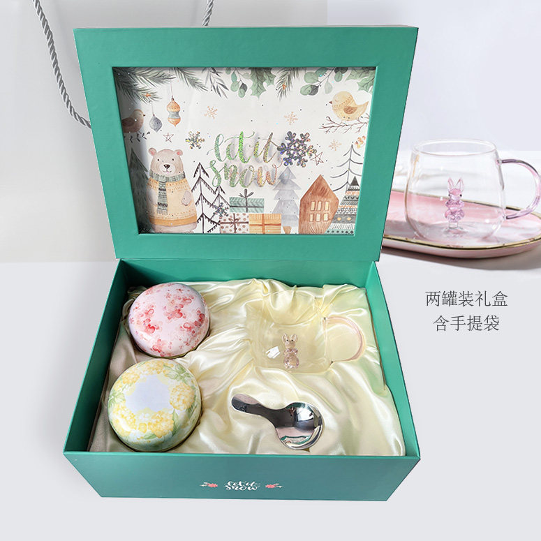 Подарочная коробка для чая цветов и фруктов два банки чашки и ложки комбинированная сценочная точка горячая продажа цветочного чая Новая год подарочная коробка для праздничного подарка