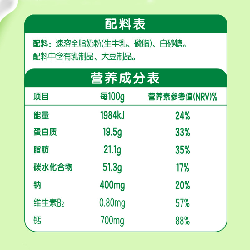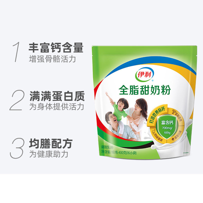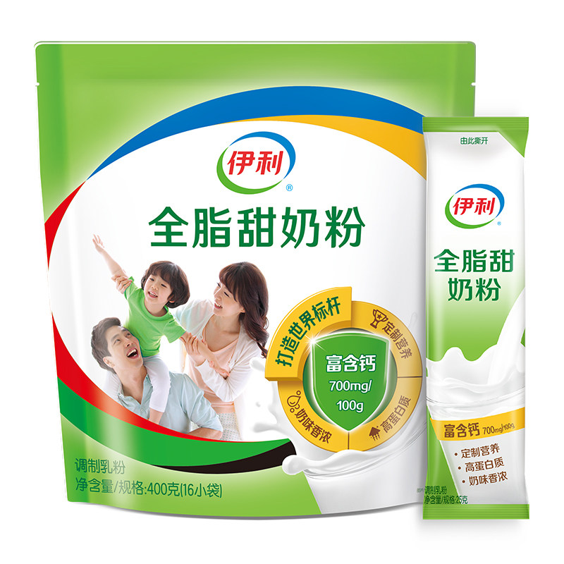 伊利 Женский колледж Студент Питание цельное жирное сладкое 400 г*1 мешок с порошковым портативным небольшим завтраком и пьющим молоком