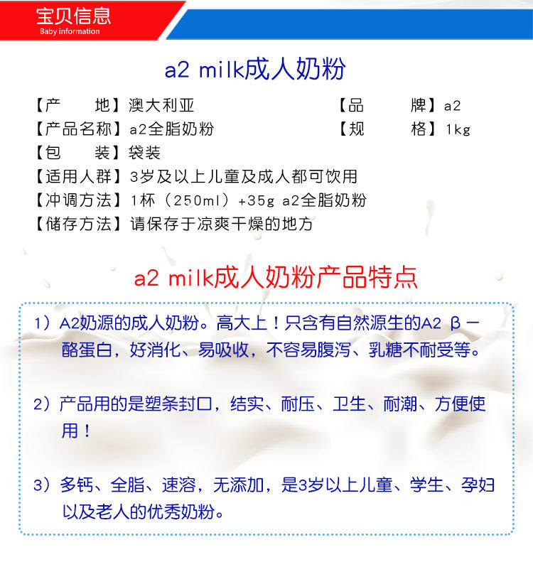 Австралия A2 молоко молоко для взрослых молока Порошок с высоким содержанием кальция цельный молочный порошок молодые студенты для среднего и пожилого 1 кг