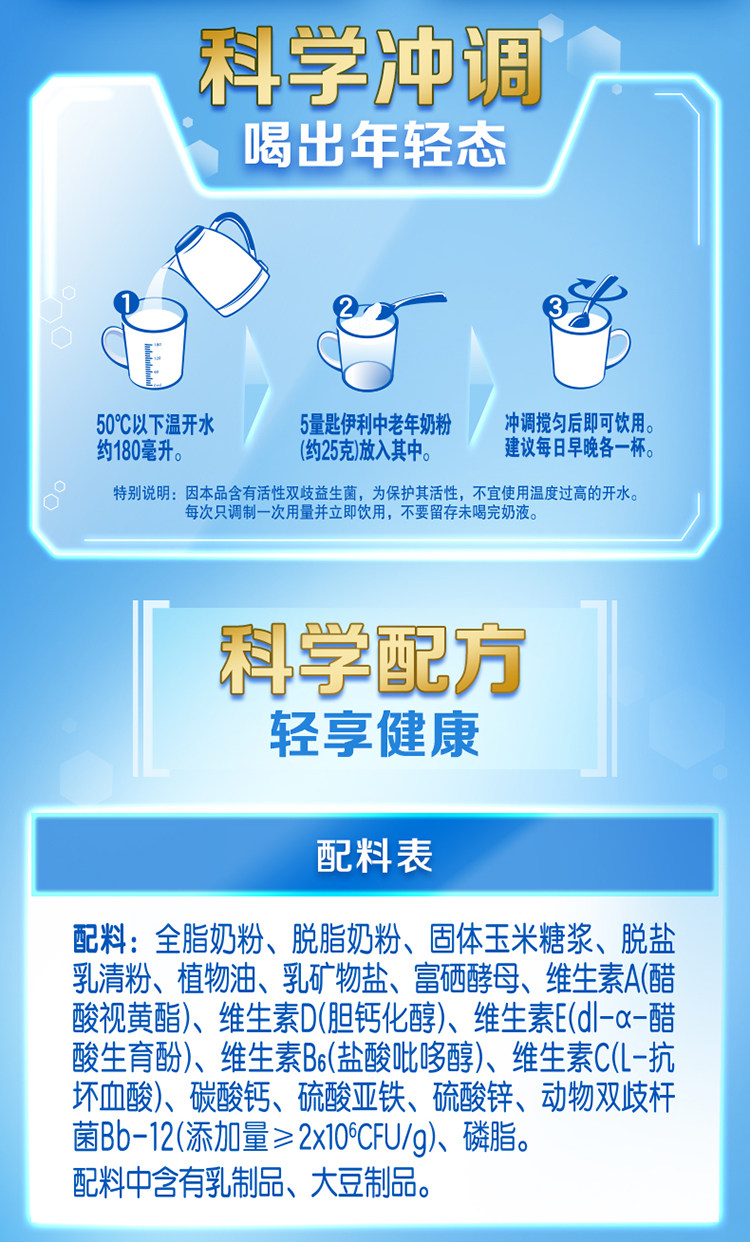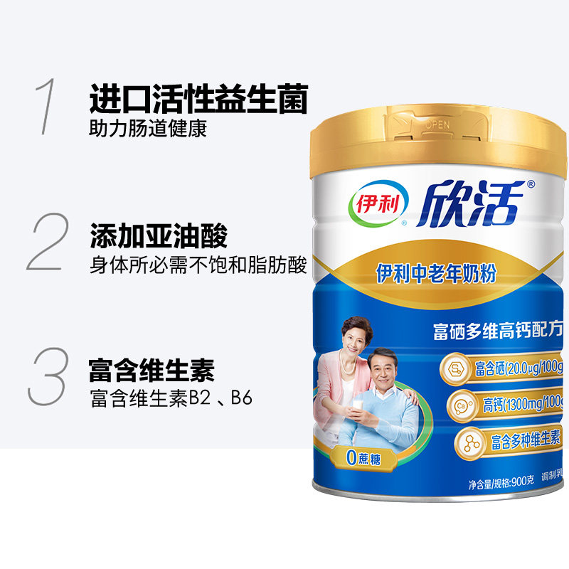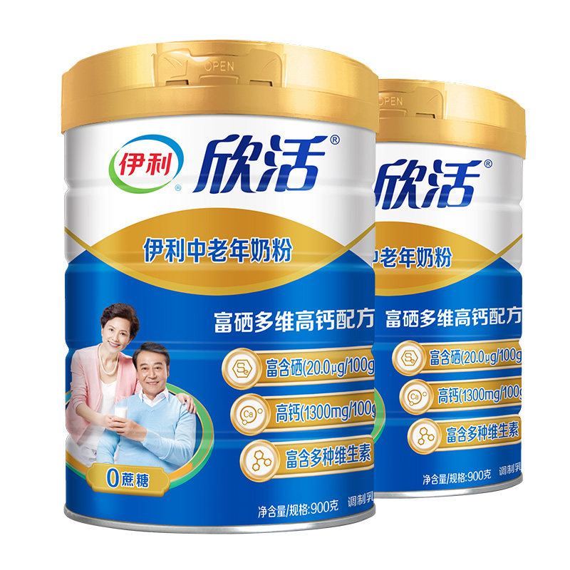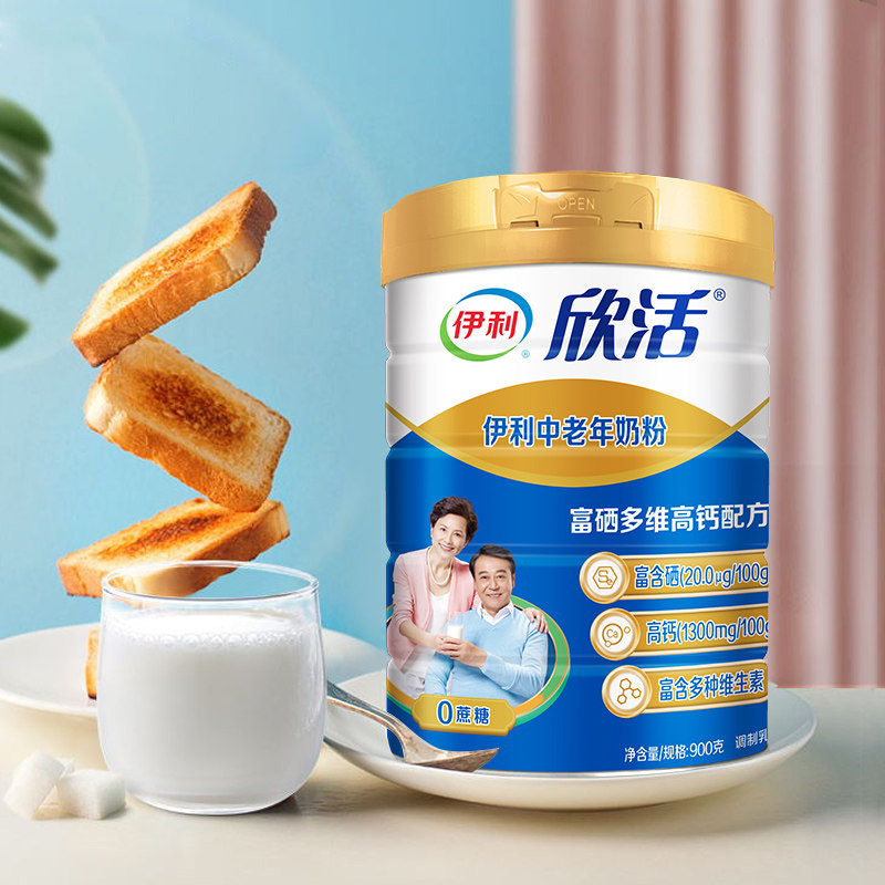 伊利 Синьхуо средний -взрослый взрослый молочный порошок с высоким содержанием кальция 900G*2 банки селена, содержащего взрослые, напиток для завтрака, порошок молока