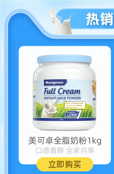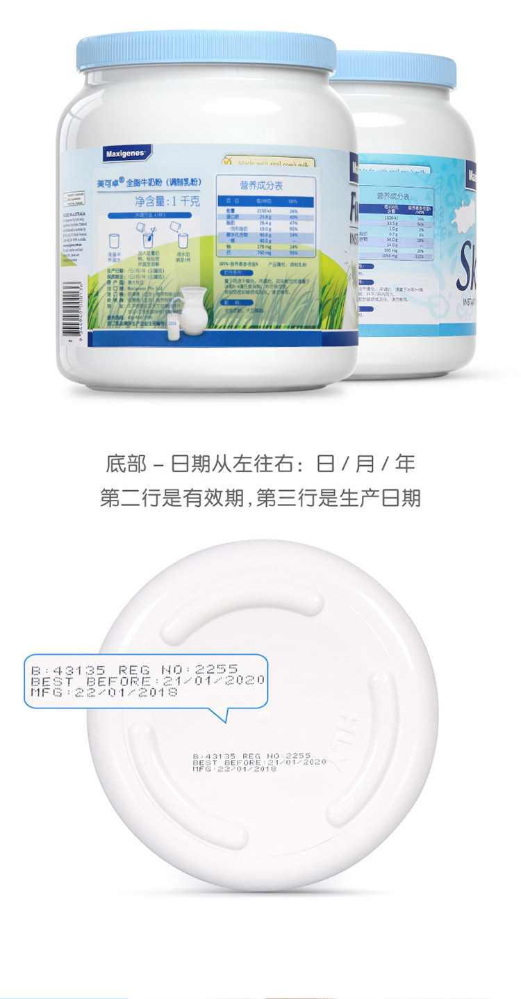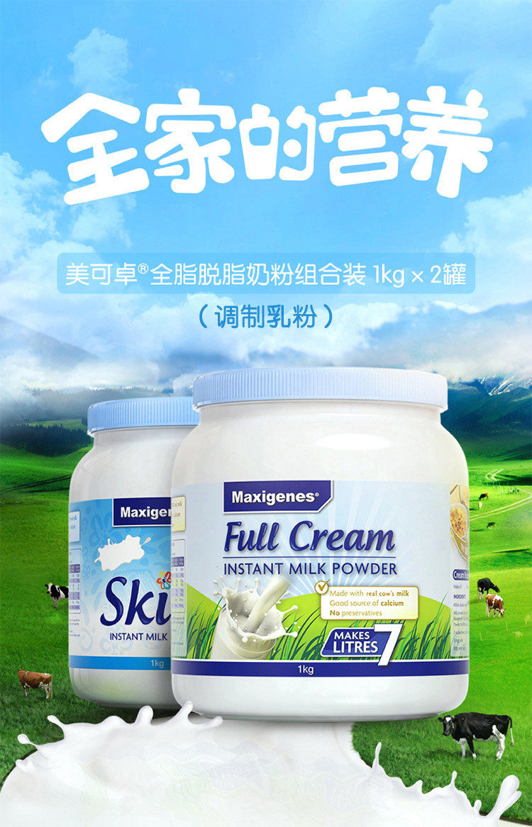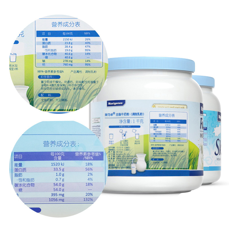 Импортированный Meikezhuo австралийский голубой жир Полный дискриоз взрослый детский порошок молока порошок молока 1 кг*2 банки студентов