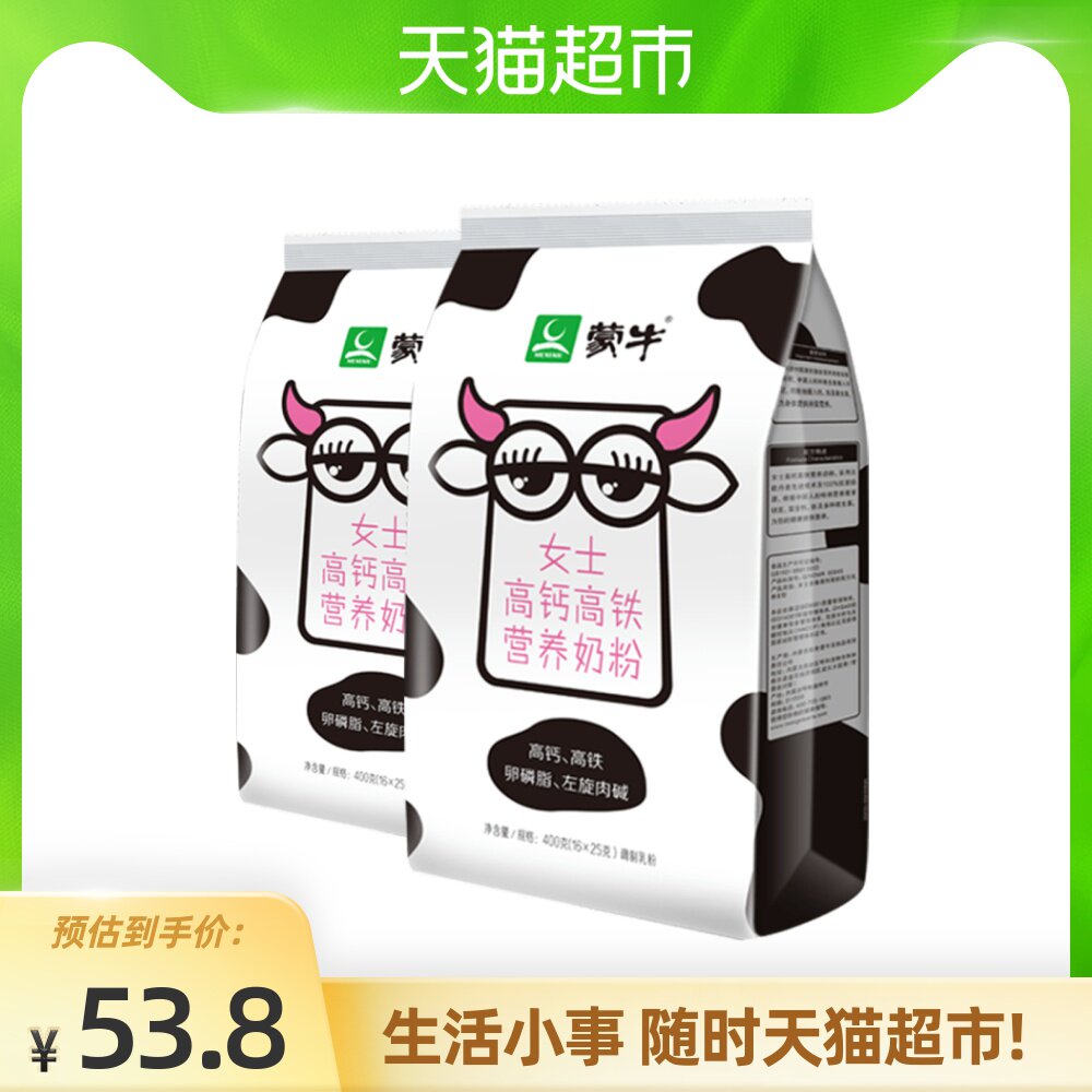 蒙牛 Даймовый молочный порошок с высоким канколом с высоким уровнем скорости питания молока порошок 400 г*2 пакета питания портативная полоса установка