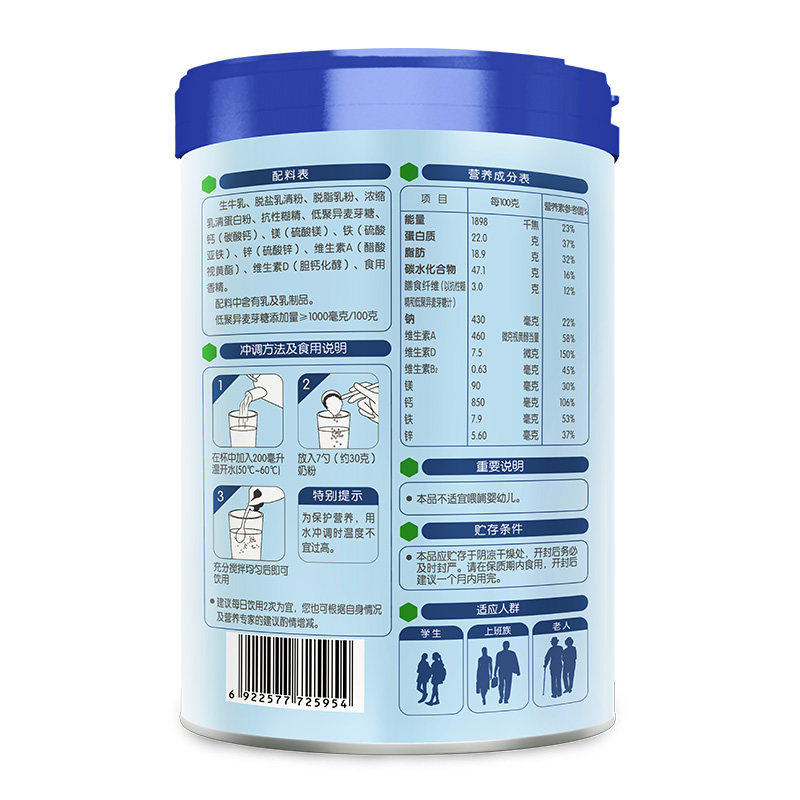 君乐宝 Le Calcium Iron -Zinc High Calcium Zinc Студент для взрослого молока порошок для завтрака молоко порошок молока 800 г*2