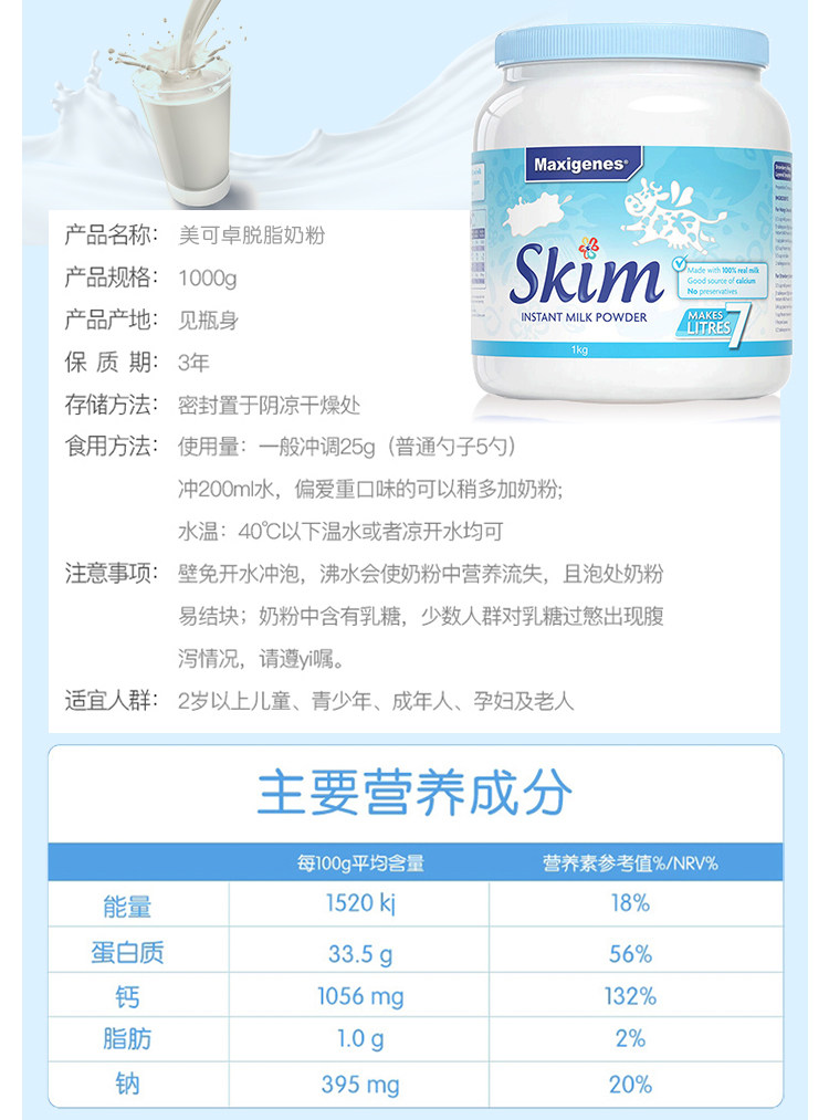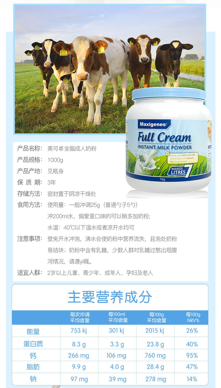 Австралия Maxigenes Meikezo Blue Fat Milk Powder Молодежный средний и пожилой беременный средний и пожилой взрослый, полный G -кальциум 1 кг