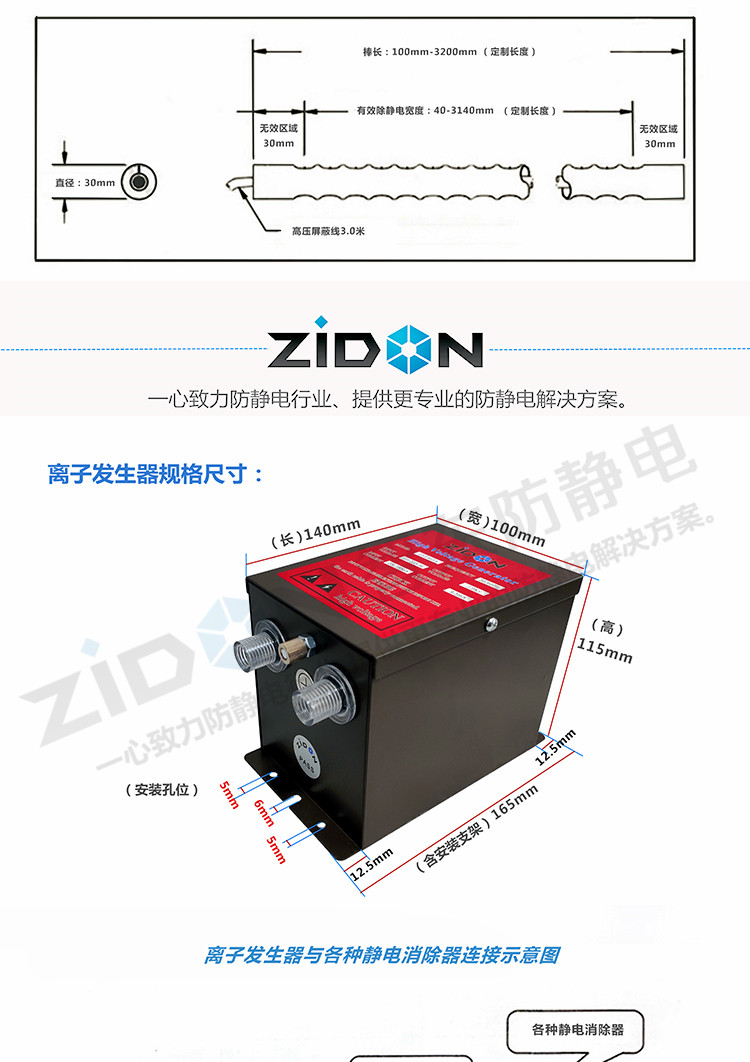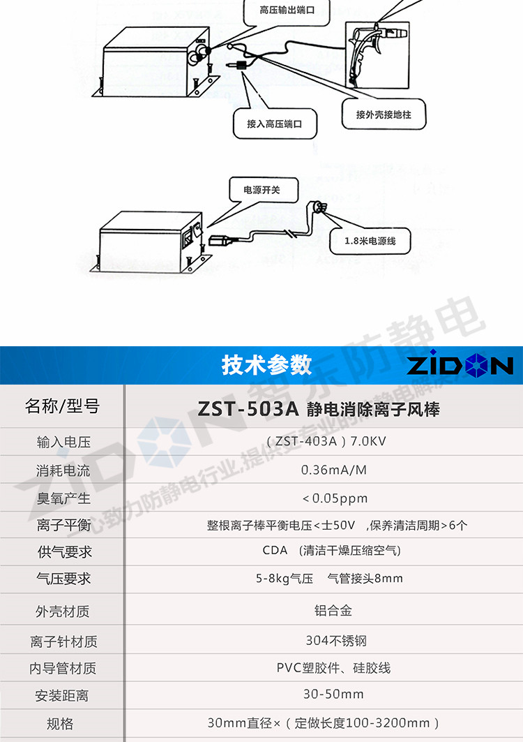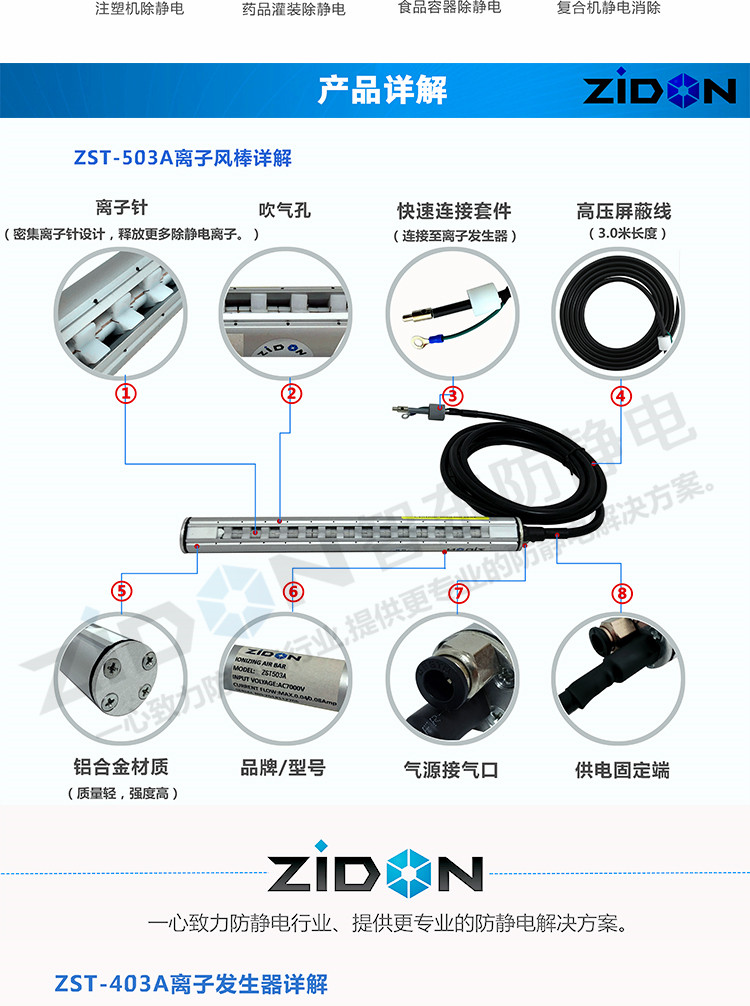 Снижение ионного ионного стержня ST-503A Снятие алюминия Устранение электростатического стержня Статическое электрическое электростатическое удаление пыли Stak ST-403A