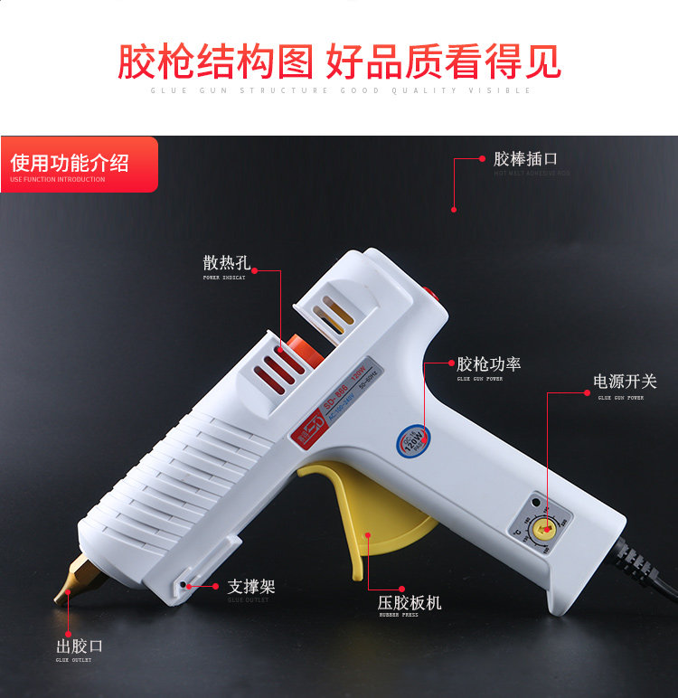 Высококачественный клей-пистолет, регулируемый термометр, 120W, 11мм