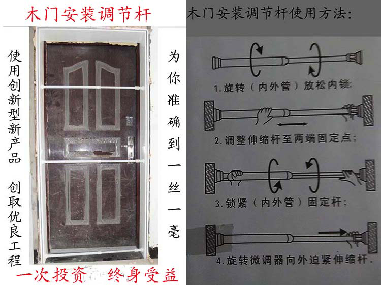 отвечать: Прежде всего, наша цена относительно дешевле. Рыночная цена устройства теленка варьируется от 700 юаней -1200 юаней, а дверная червя может устанавливать только дверь за раз.Если мастер работника хочет быть быстрее, по крайней мере, есть как минимум два набора.Мы слишком выше нашей стоимости.И это не удобно носить.Наш деревянный стержень для регулировки двери составляет всего около 300 юаней, и мы можем оседать несколько подходов за раз.По сравнению с Amenmen, тратить меньше денег, эффект установки не хуже, чем Anmen, и скорость Anmen значительно улучшается.Таким образом, деревянный стержень регулировки двери - хороший выбор для установки деревянных дверей.