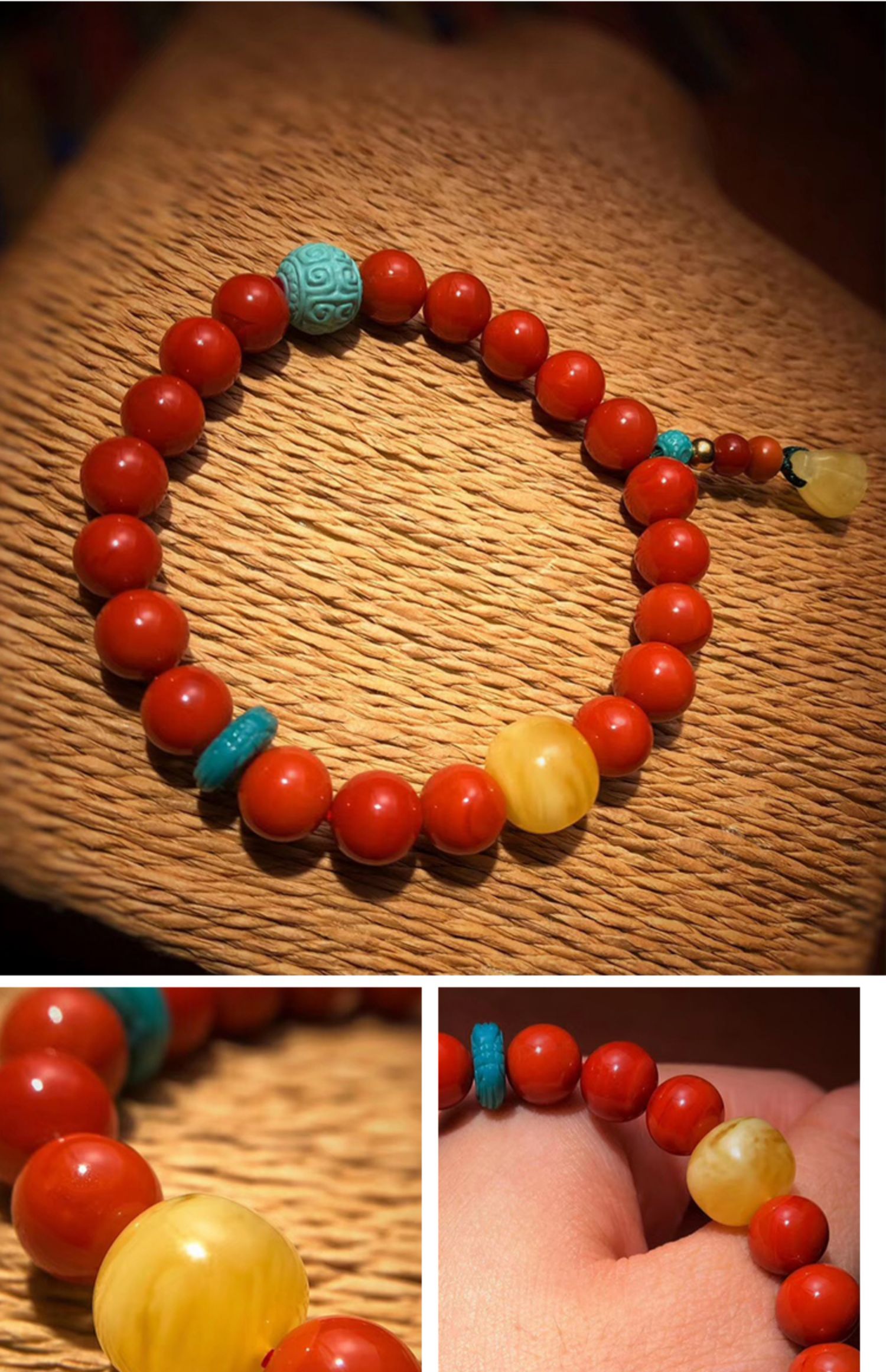 Нейлоновое бирюзовое украшение-шарик из воскового агата, ткань для полировки