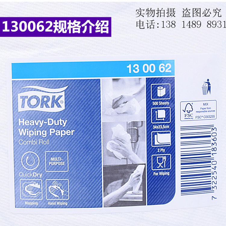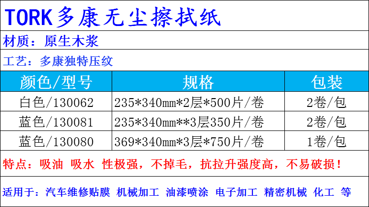 Торк Duokang 130062/130081 Промышленная безмолвная бумага, поглощение нефти, поглощение воды, чистая пульпа белая и синяя бесплатная доставка