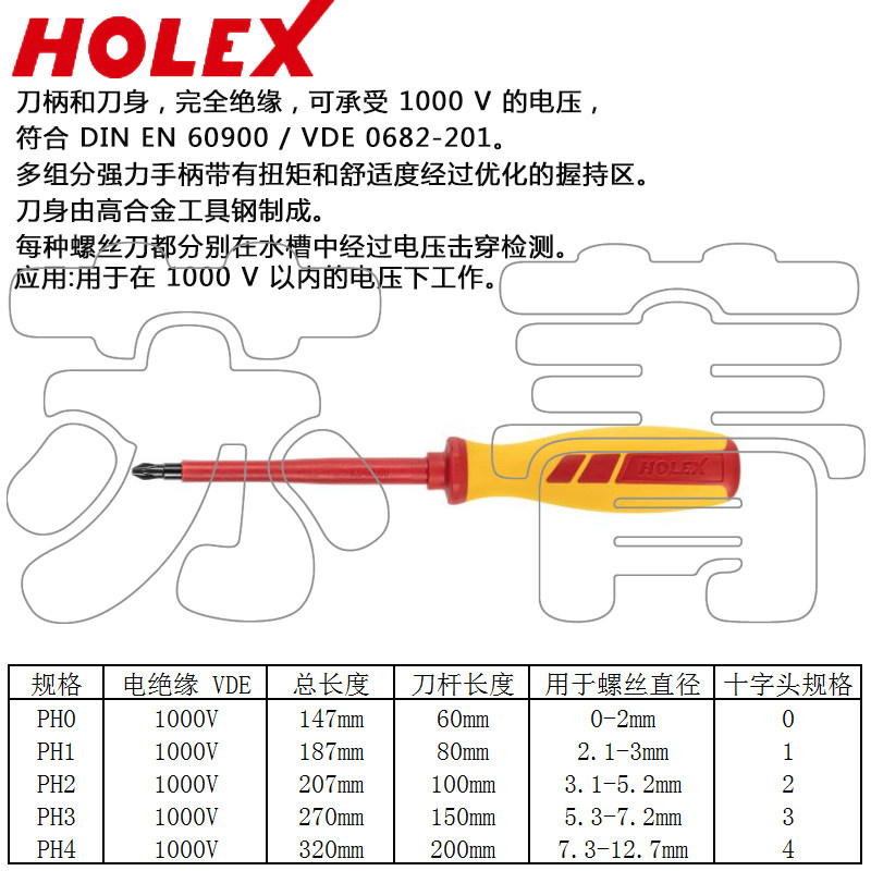 Немецкая крестообразная отвертка Hofmann HOLEX, полностью изолированная ручка и лезвие, серия 668631