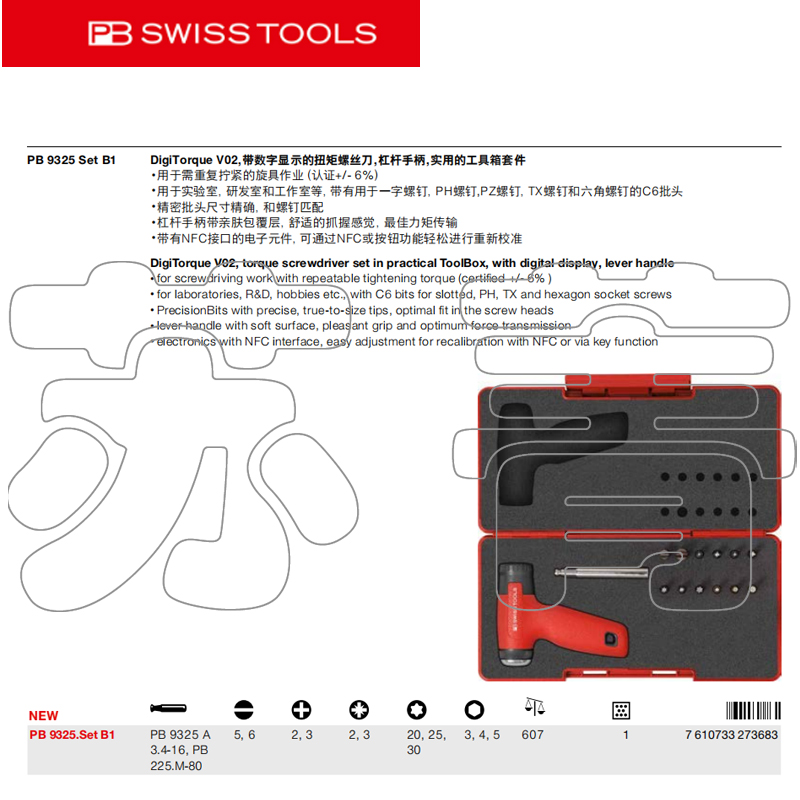 Швейцарский оригинальный PB Swiss Tool Number, показывающий набор заголовков крутящего момента PB 9325.Set B1 Series