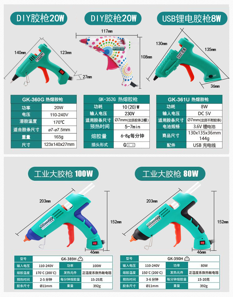 | Цвет: | GK-361U (8W) Резиновый пистолет лития для отправки 20 гель-полос, Клей-пистолет, 360G, 20W, GK-389H (100W) 20 корней с мощными резиновыми пистолетами, Маленький клей-пистолет, 352G, 20W, GK-390H (80 Вт) 20 корней с мощными резиновыми пистолетами, Один -килограмма резиновая полоса |