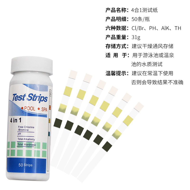 Аквариум -бассейн Тестная бумага PH испытательная полоса Оставшаяся тестовая бумага хлора 4 -1 -1 испытательная бумага для испытаний качества воды 50 кусочков и 1 бутылка