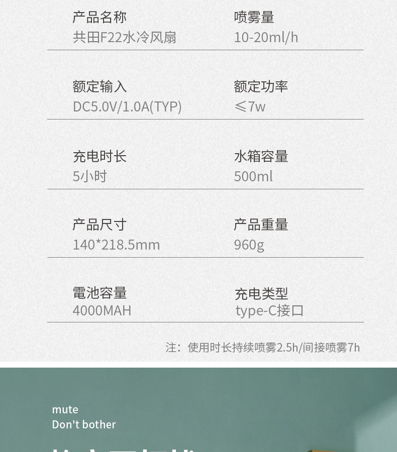 Gongtian F22 Water Cold Telletst Spray Coldrigtion Fan Fan USB натуральный встряхивание Электрическое вентилятор Статический вентилятор Статический маленький кондиционер