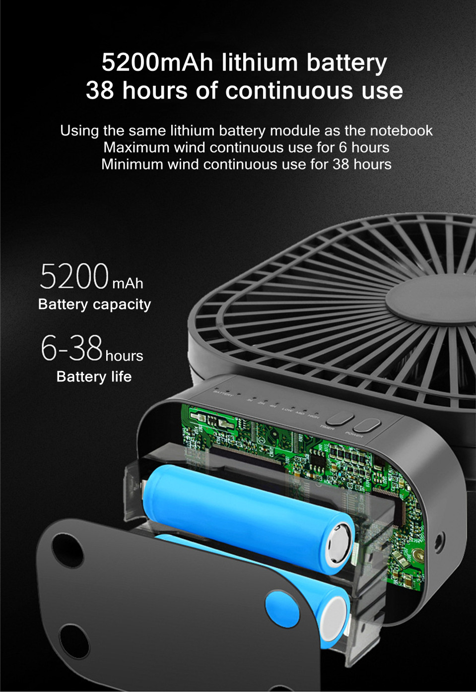 Время 90 ° Вентилядор де Добраменто 5000 мАч USB Bateria ve